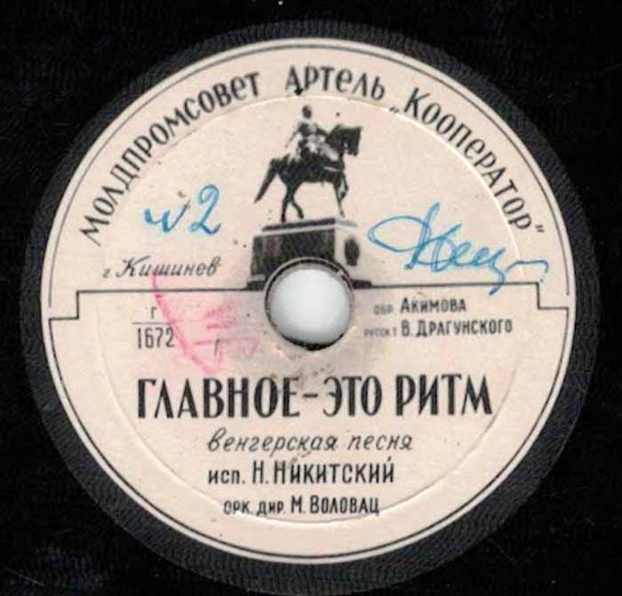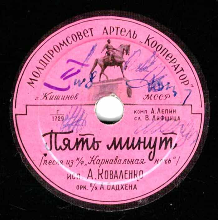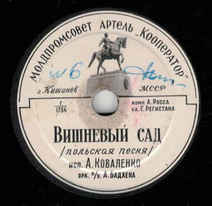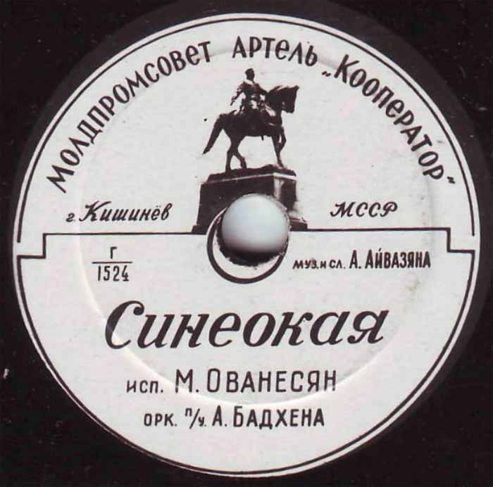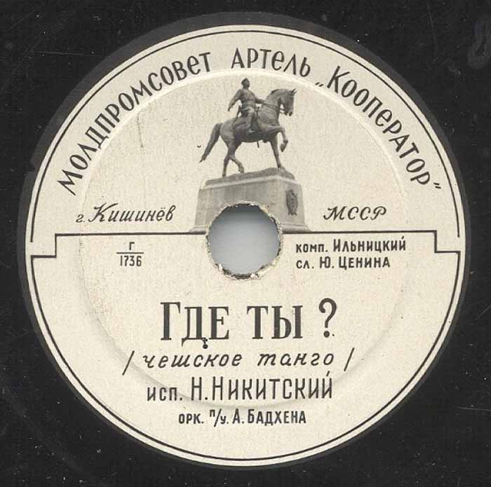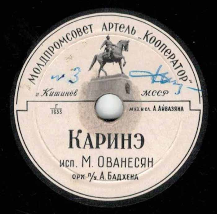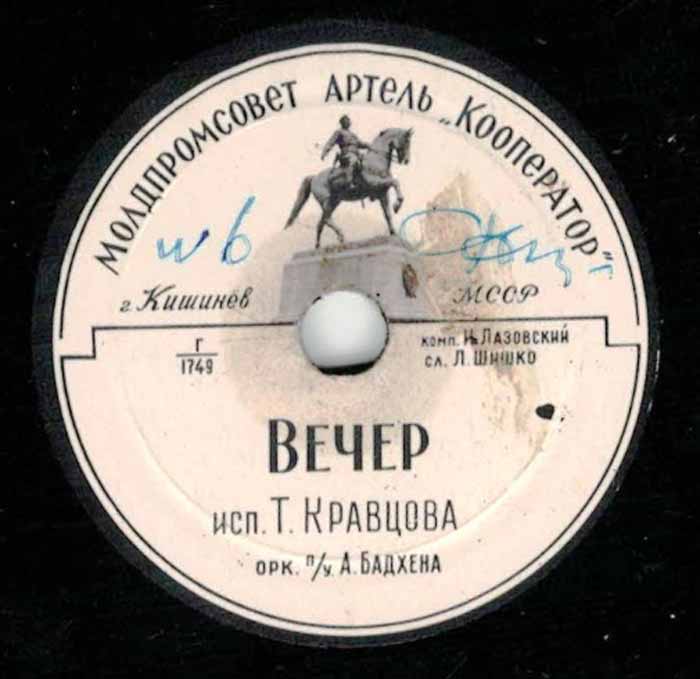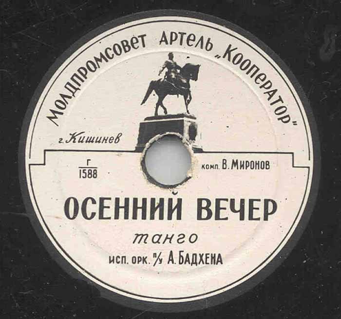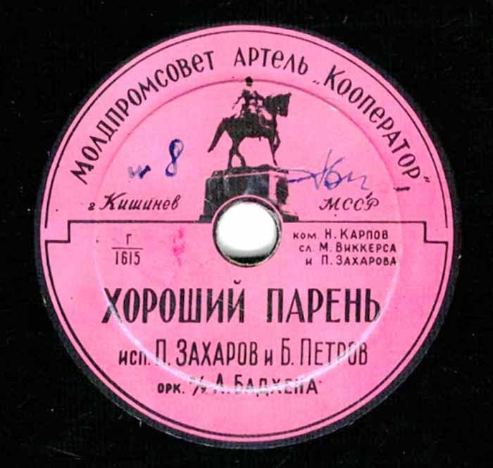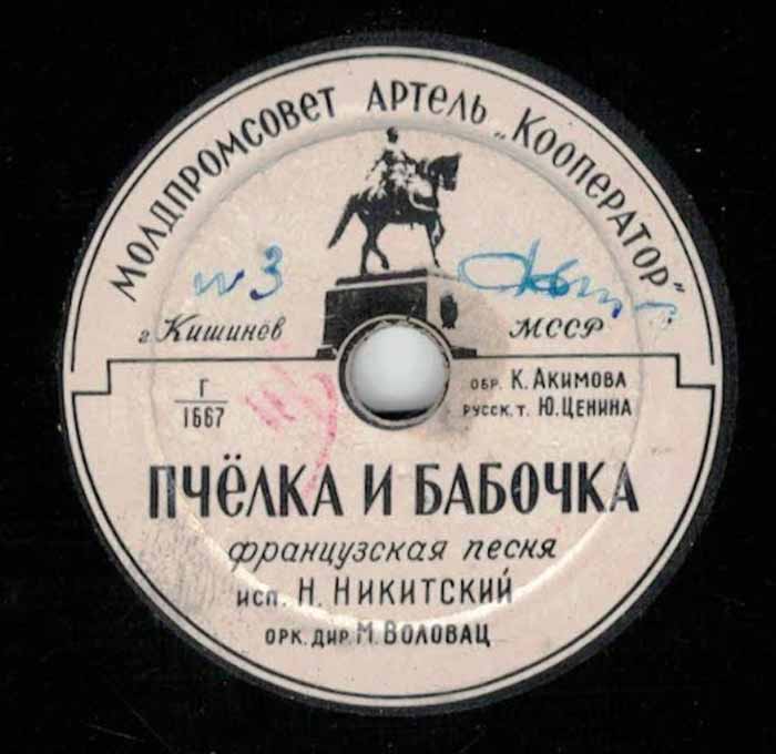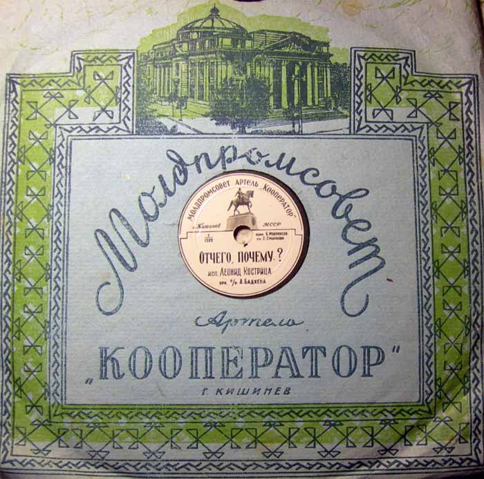 года артелью «Кооператор» Молдпромсовета, гор. Кишинев. Размер грампластинки