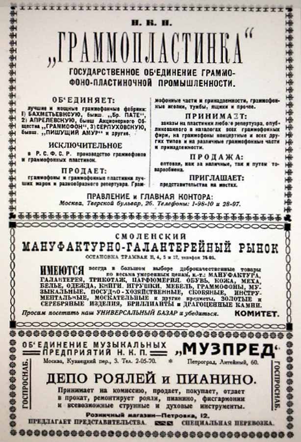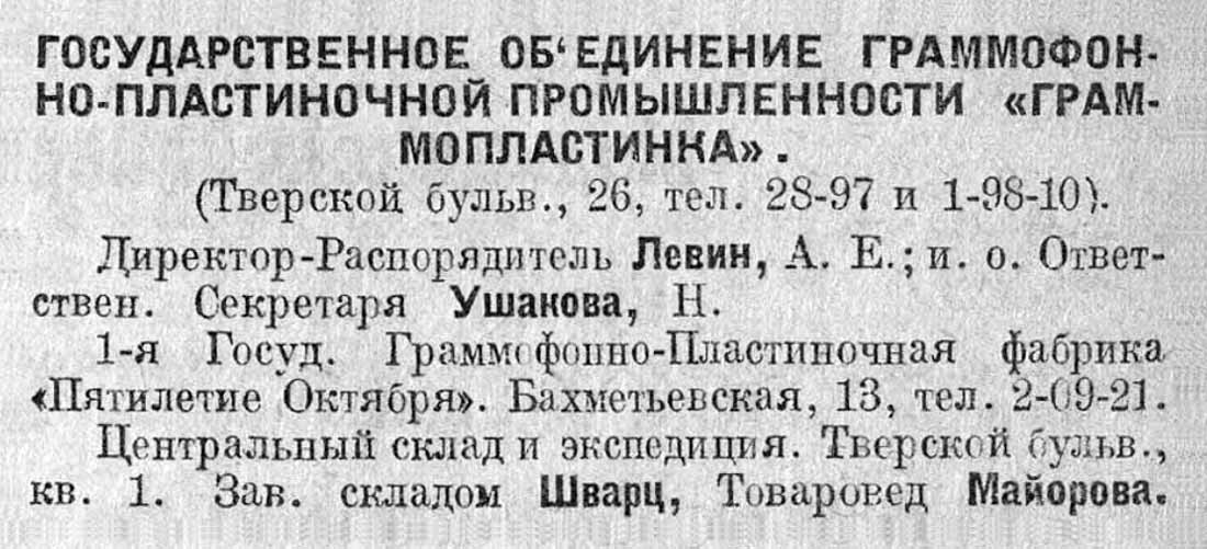 предприятий граммофонной промышленности РСФСР "Граммопластинка" с 1922