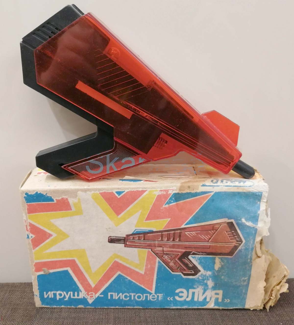 Игрушка - пистолет "Элия" выпускался предположительно с 1987 года Нальчикским заводом полупроводниковых приборов. Световой и звуковой бластер. Предназначен для детей 8...12 лет.