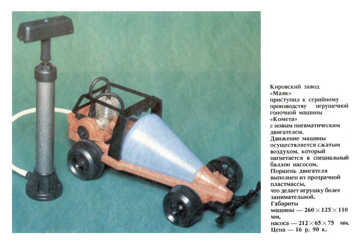 Игрушечная гоночная машина "Комета" подготовлена к выпуску с 1990 года Кировским заводом "Маяк".