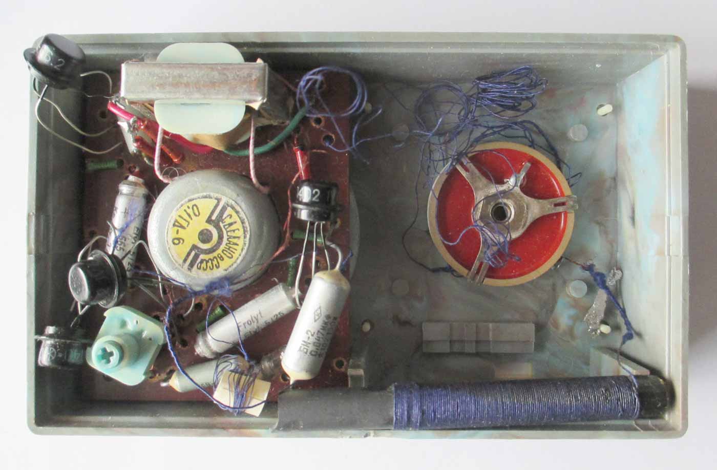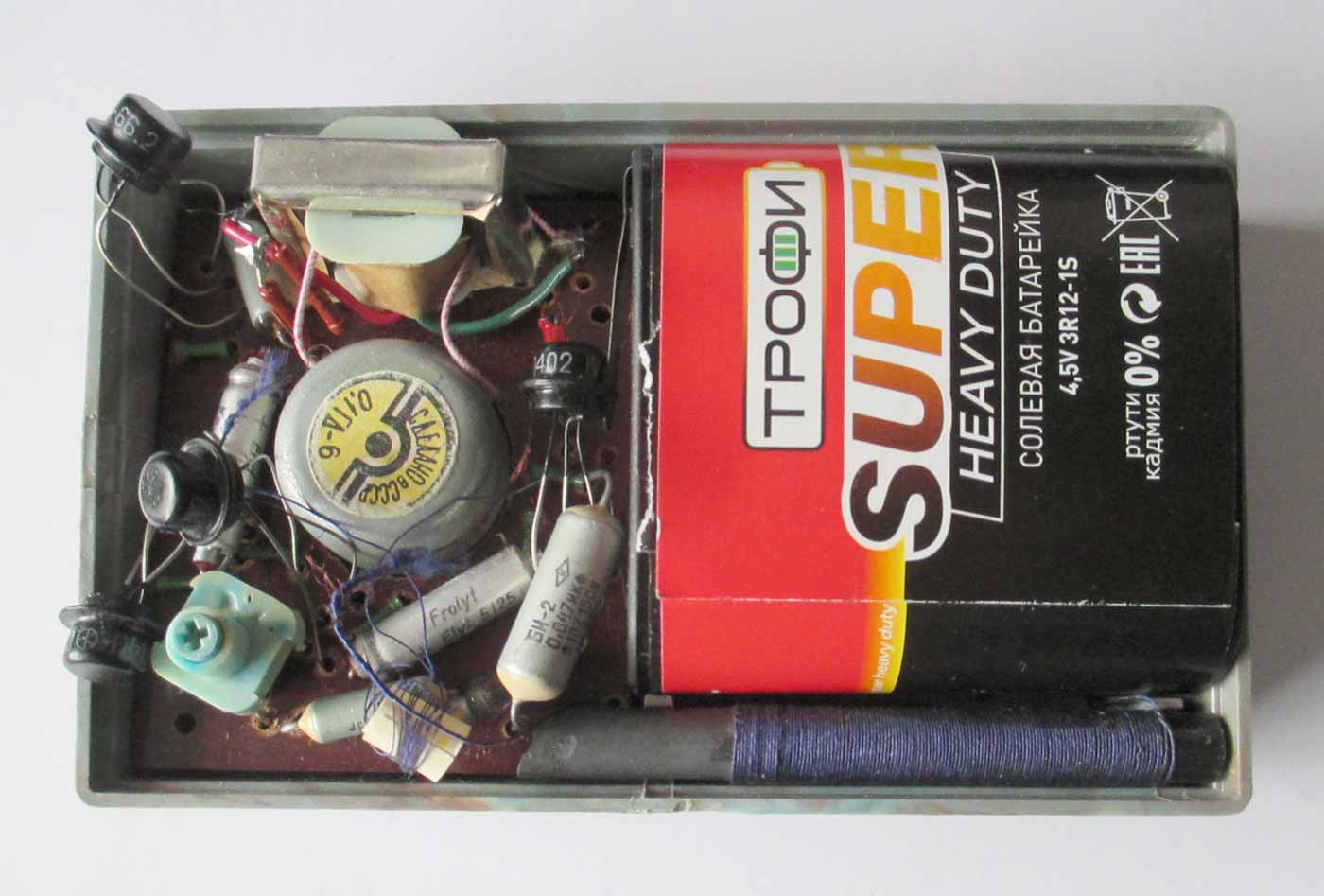 0,1ГД-6. Узлы, детали, батарея и громкоговоритель размещены в полистироловом