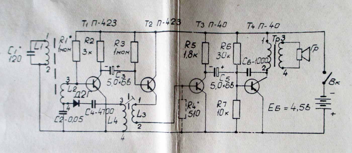 от 2-го варианта и так же позволяет собрать радиоприёмник на 4-х транзисторах