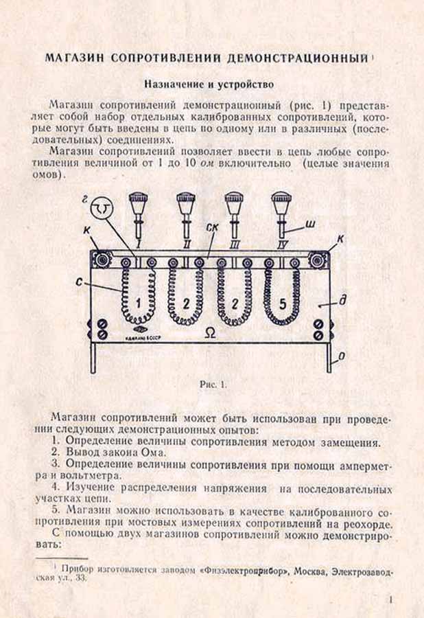 в ряде демонстрационных установок при изучении законов электрического тока.