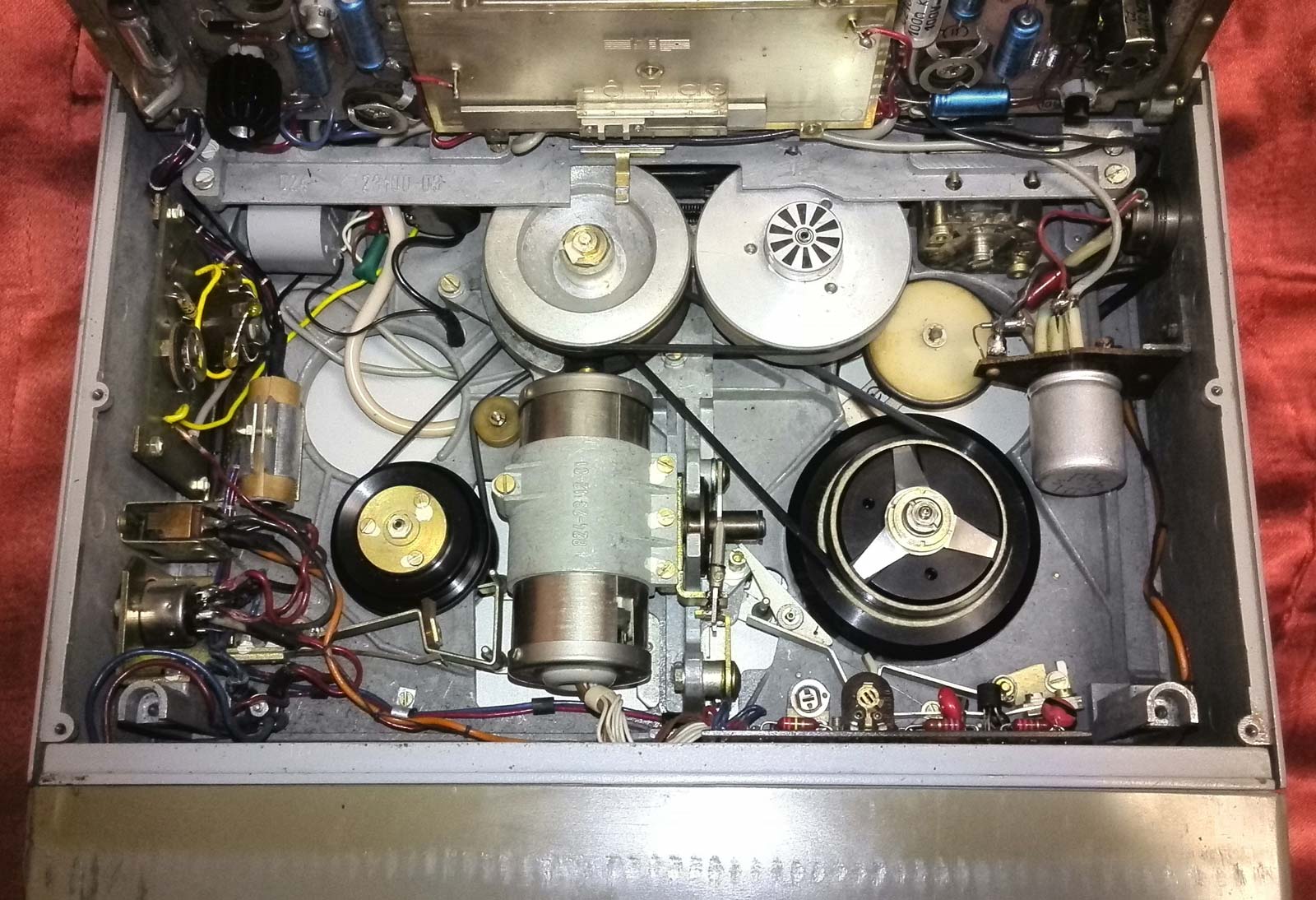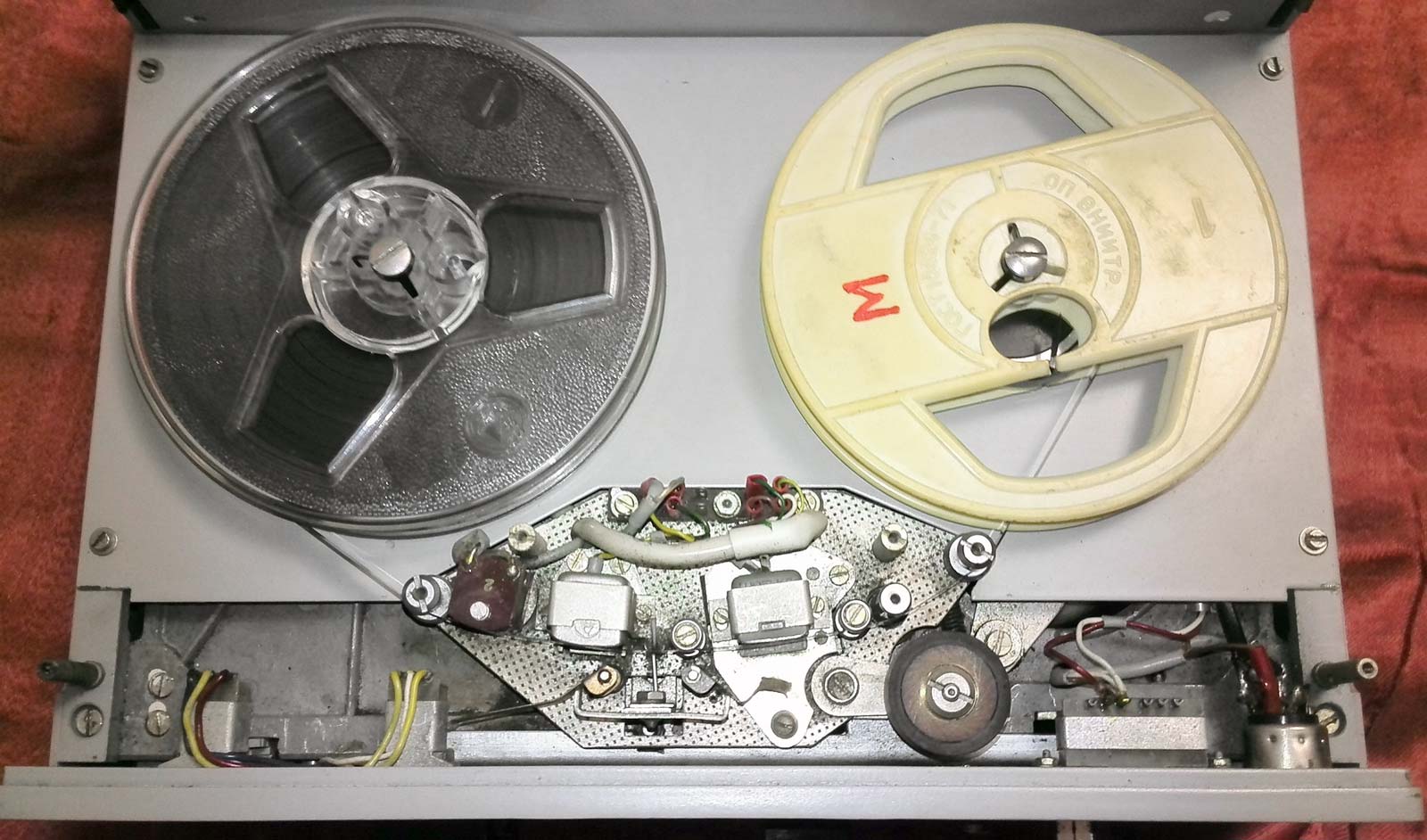 запись производится на магнитную ленту 6,25; скорость - 19 см/сек; магнитофон