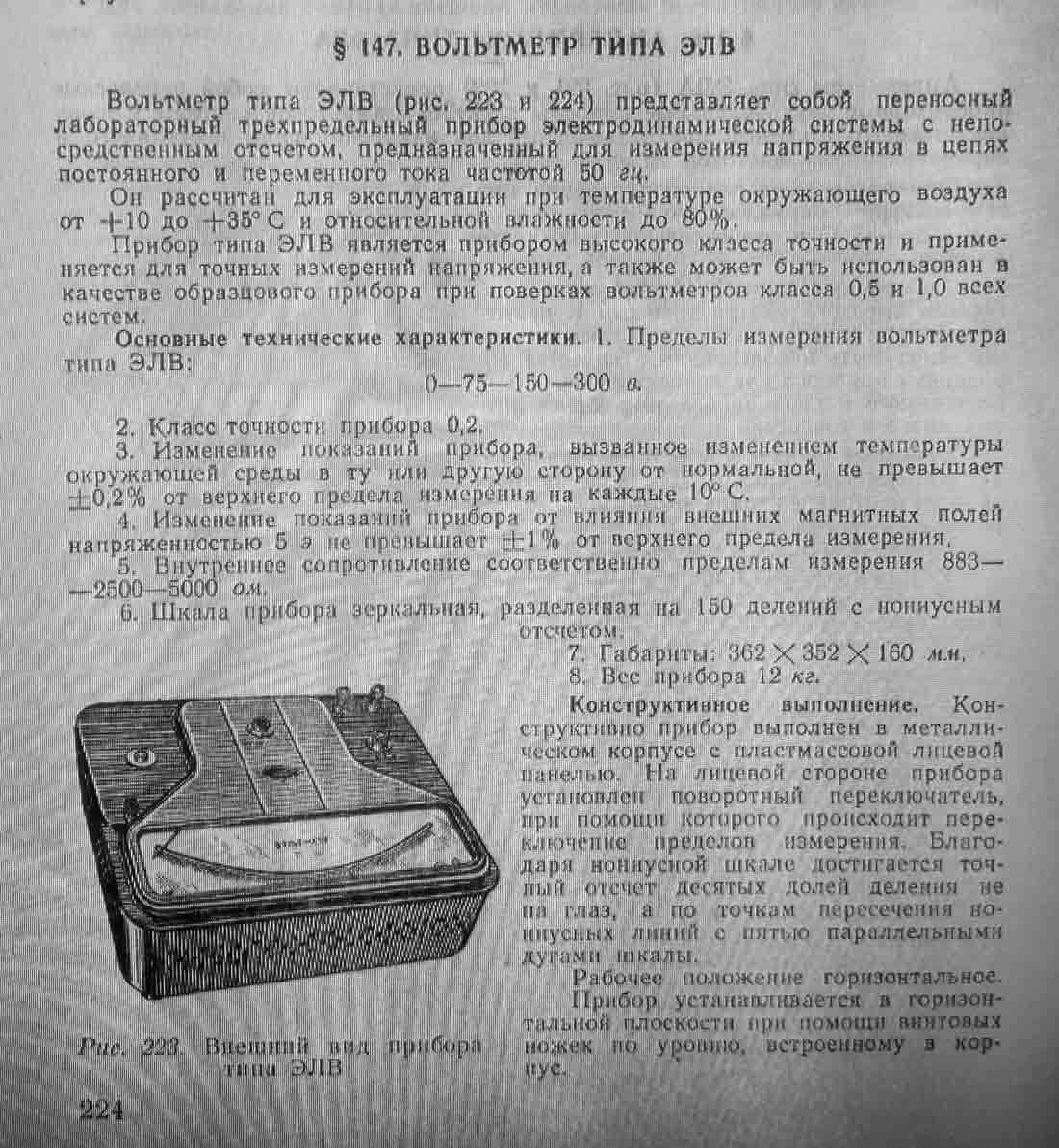 Вольтметр типа "ЭЛВ" выпускался предположительно с 1951 года. Описание в документации. Фотографии и документацию предоставил Вадим Черненко.