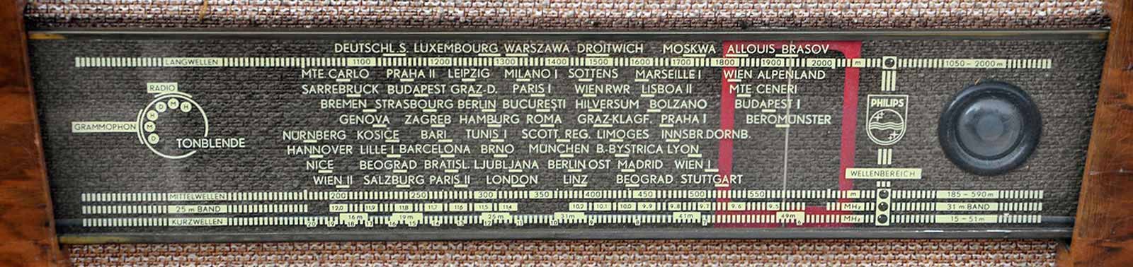 "Philips". Шестиламповый супергетеродин. Диапазоны волн: ДВ - 1050...2000