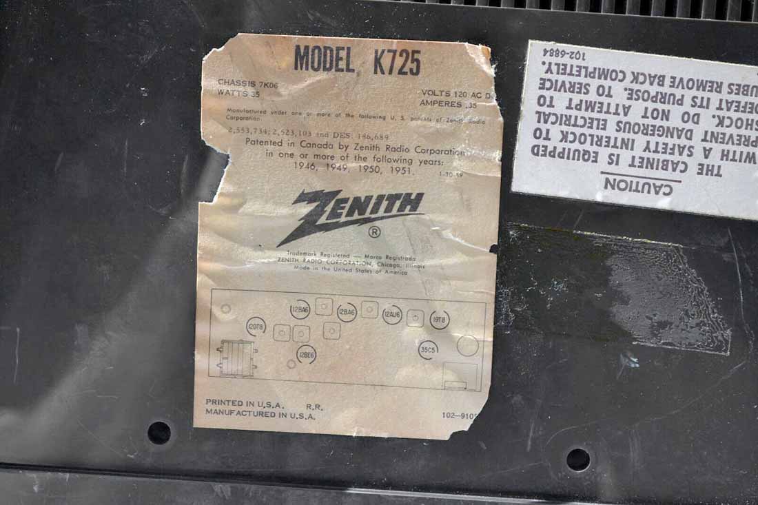 Сетевой ламповый радиоприёмник "Zenith K725W" выпускался с 1963 года корпорацией "Zenith", США. Супергетеродин. 7 радиоламп. MW 550...1600 кГц. FM 88...108 МГц. Питание от сети переменного тока 117 В.