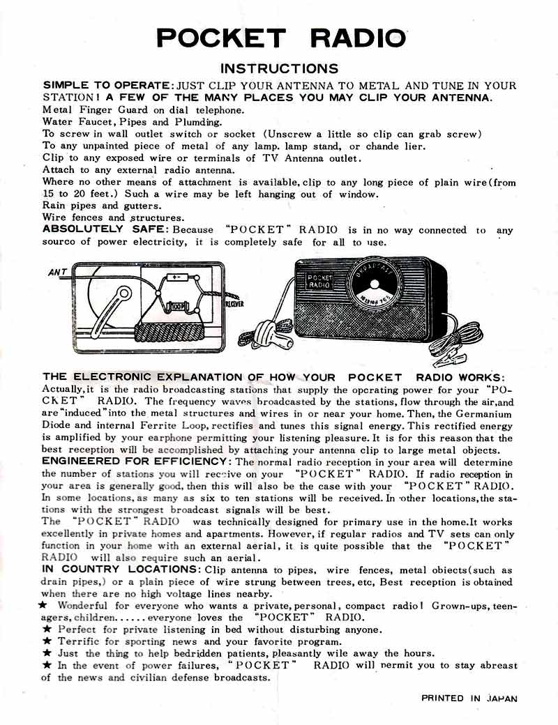 Детекторный радиоприёмник "Arrow" (Стрела) выпускался возможно с 1962 года в Японии. Рспостранялся в США компанией Arrow Trading Co. New York. Фото с сайта http://www.abetterpage.com/