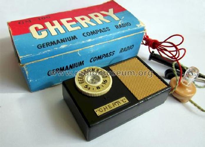Детекторный радиоприёмник "Cherry GM-100" выпускался возможно с 1956 года в Японии. Детский радиоприёмник на диапазон средних волн. Ссылка на фото.