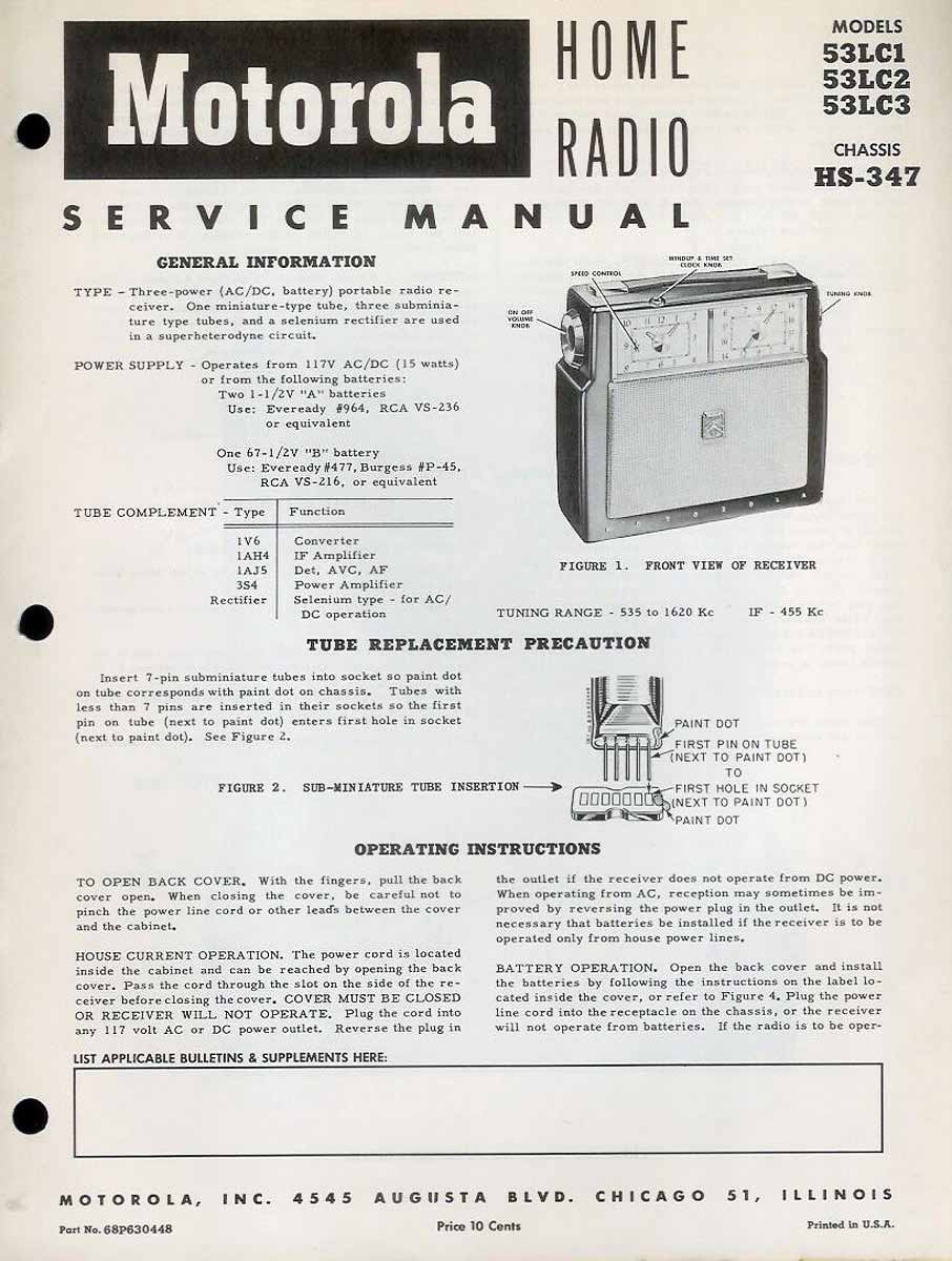 "Motorola-53LC1" выпускался с 1953 года компанией "Motorola", США. Супергетеродин