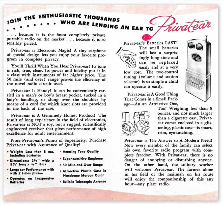 радиоприёмник "Privat-ear 5-DS-001" выпускался с 1949 года Американской