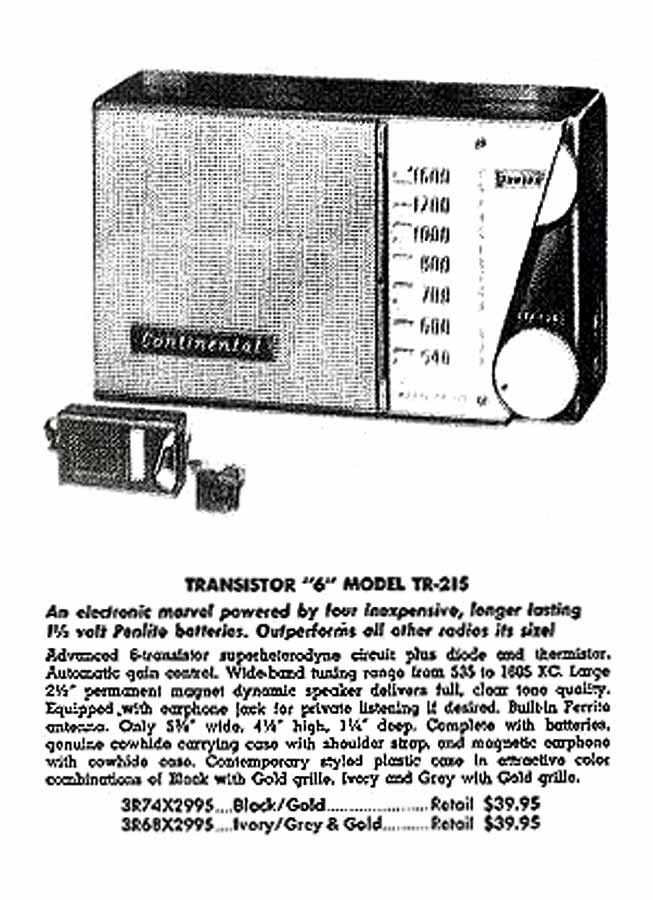 для компании "Continental Merchandise", Нью Йорк, США. Супер. 6 транзисторов.