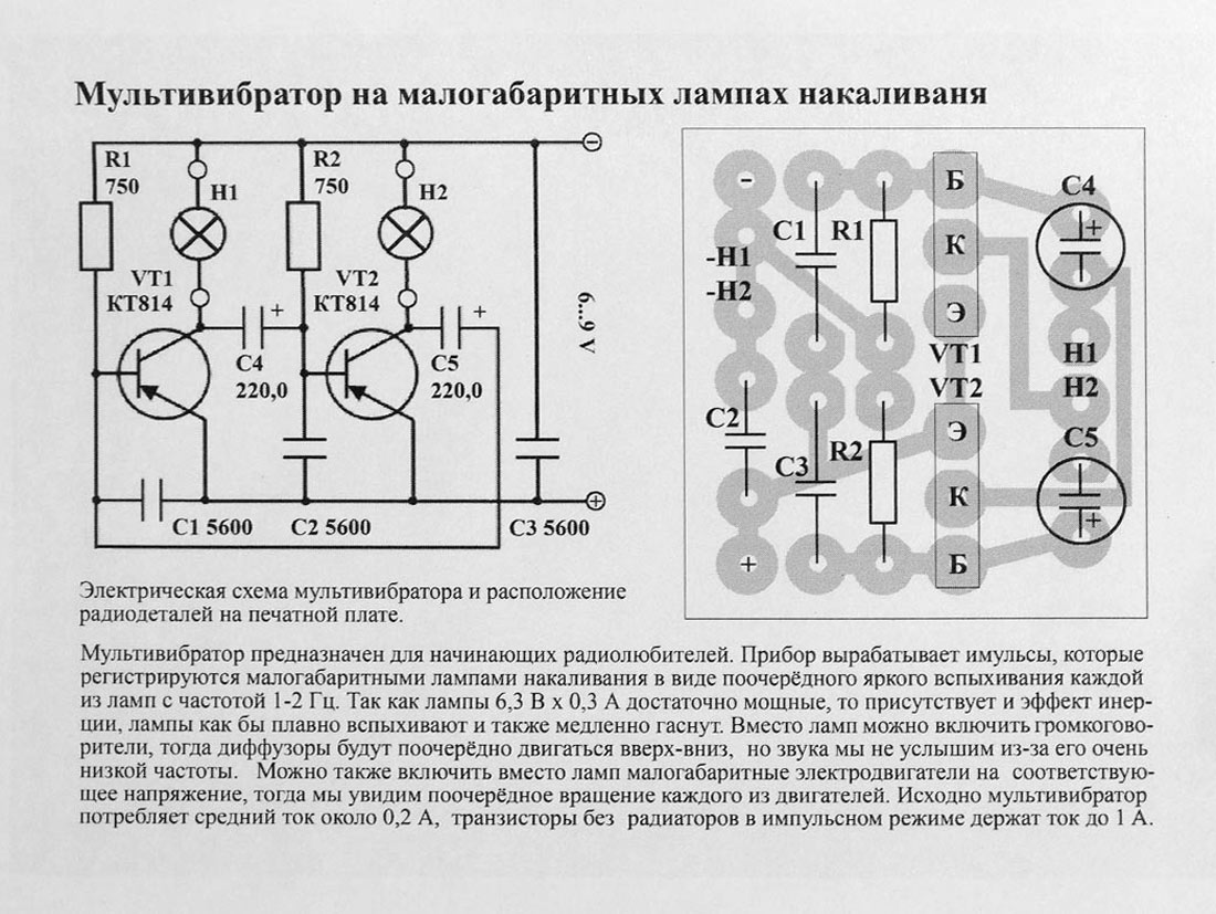 для начинающих радиолюбителей. Он знакомит с одной из разновидностей мультивибраторных