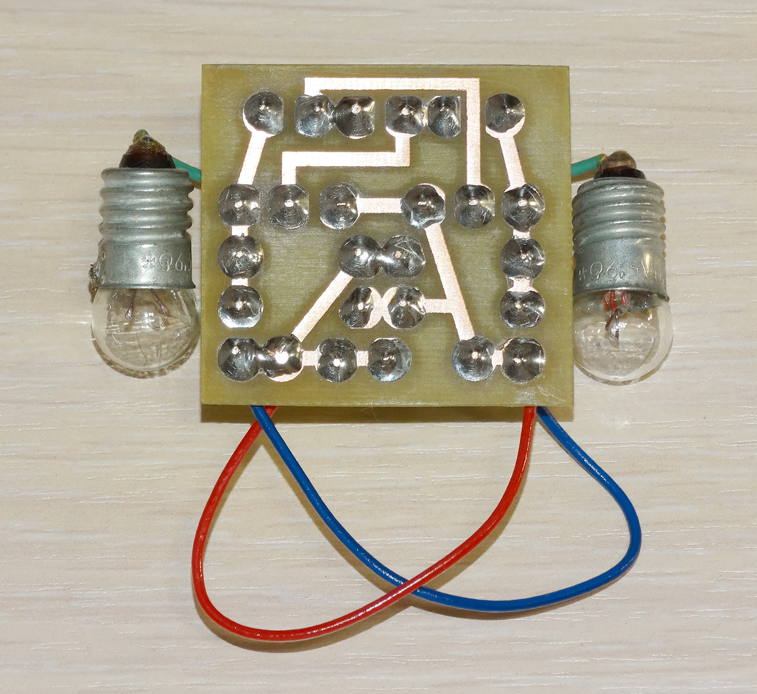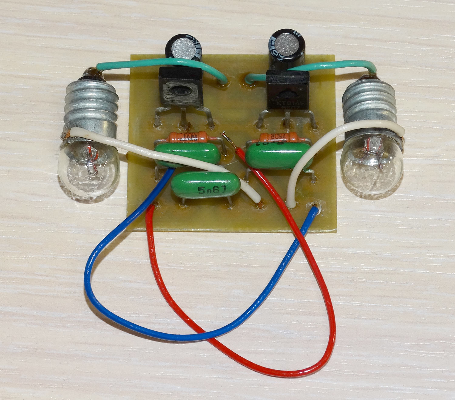 схем, где работа схемы индицируется плавным перемигиванием лампочек накаливания.