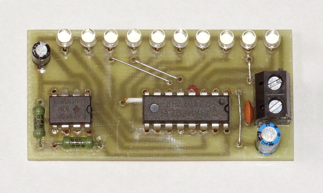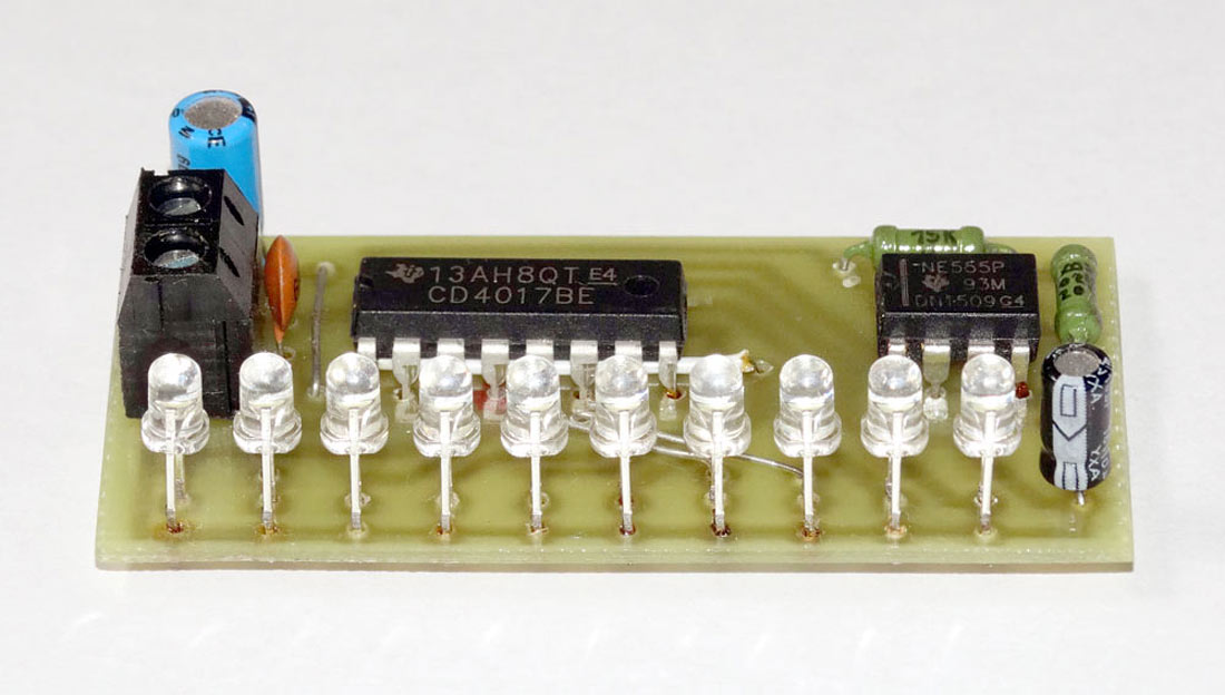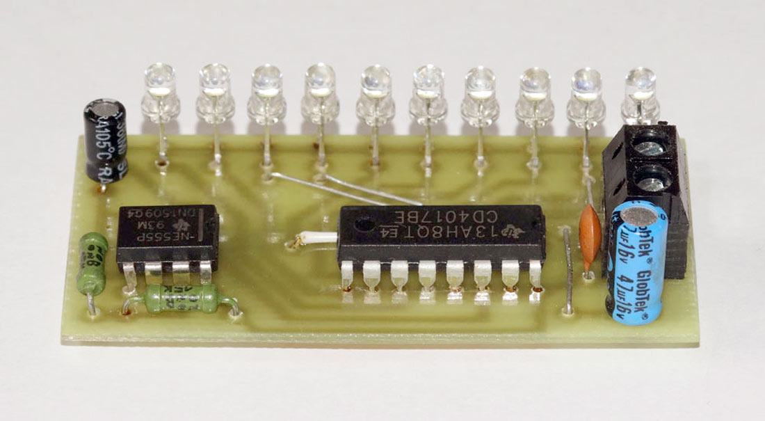 с 1-го по 10-й одноцветные светодиоды, время вспышки каждого светодиода