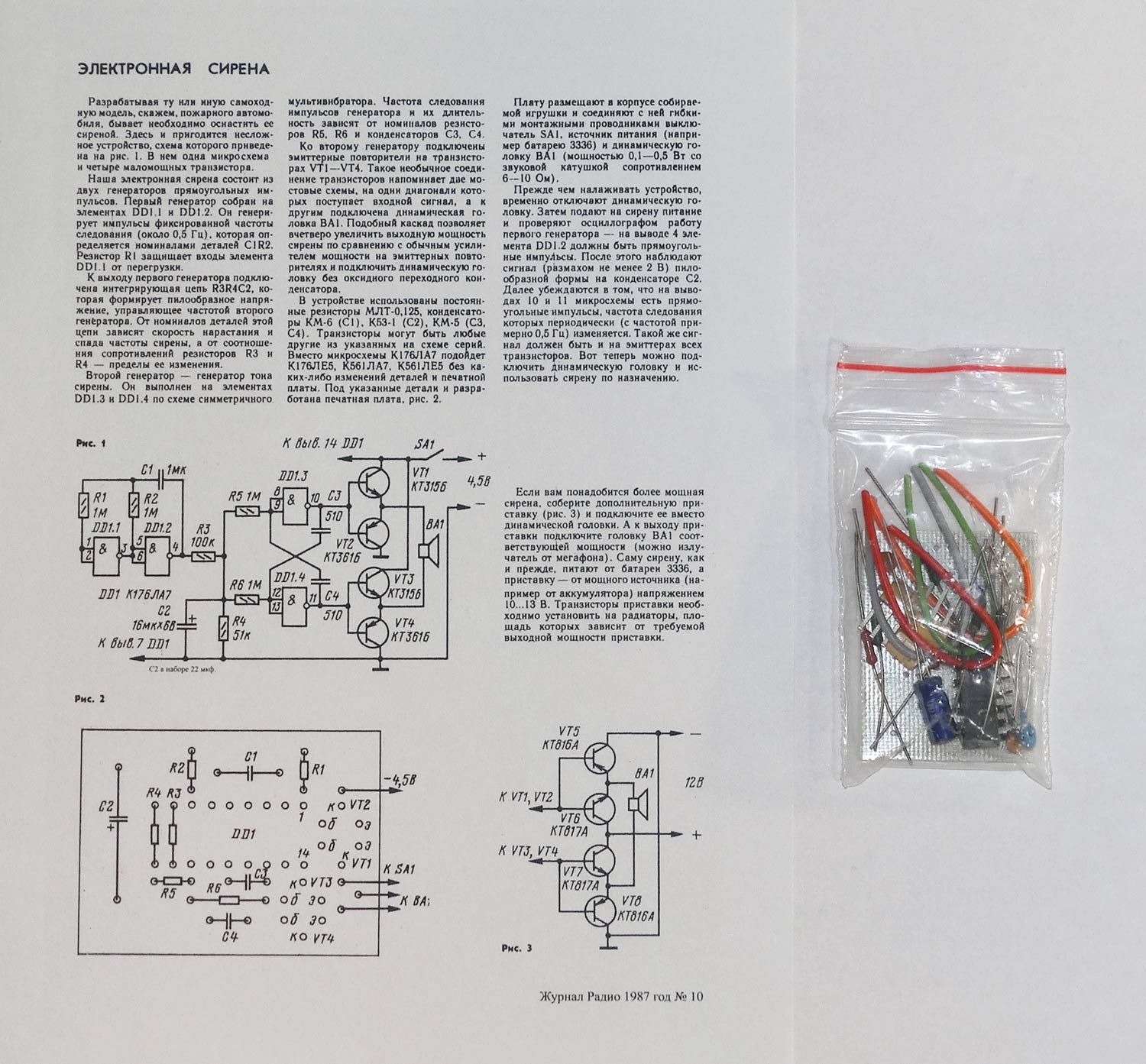 провода и плату, из которых собирается электронная сирена повышающая звуковой