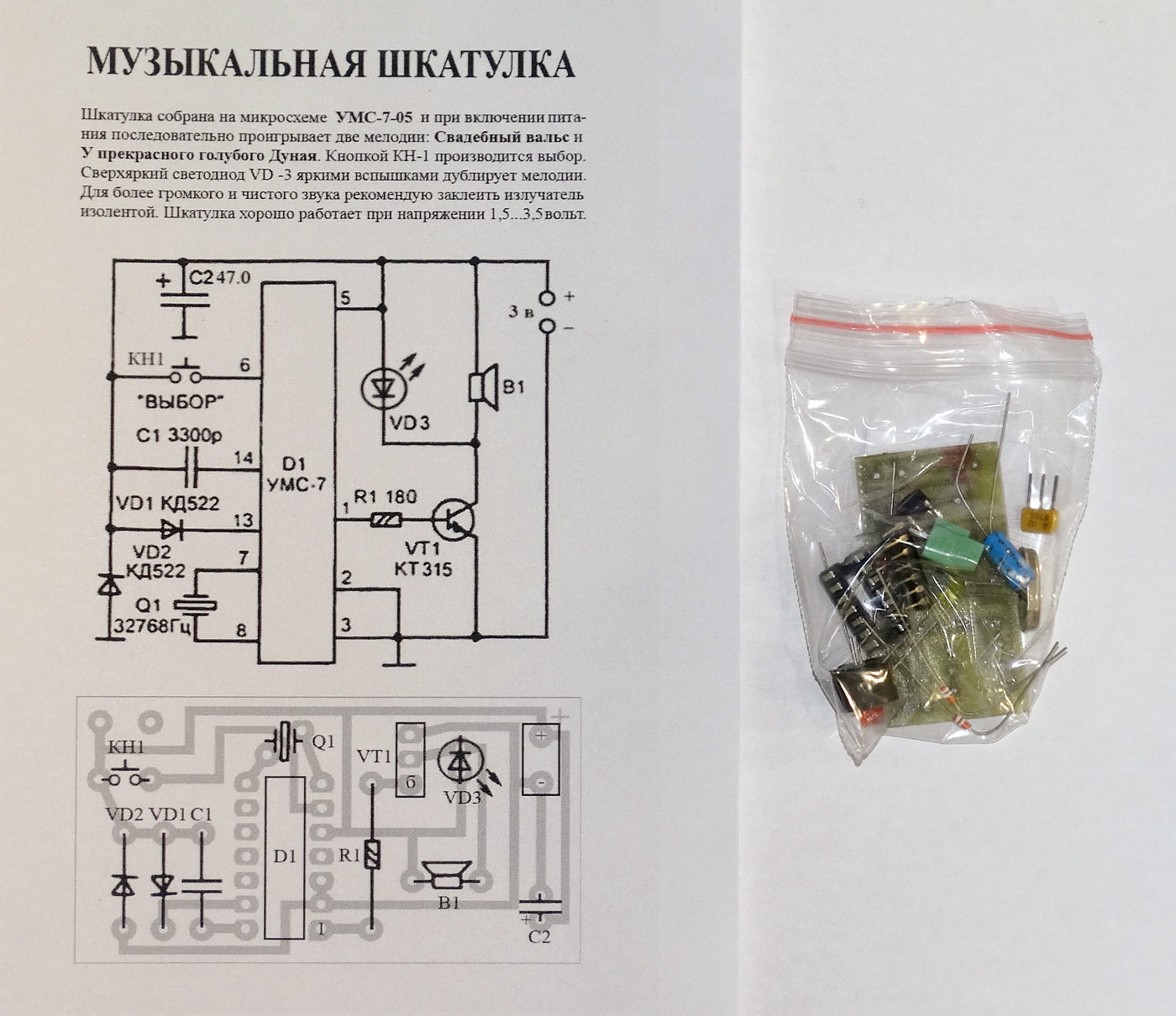 описание, электрическую и монтажную схемы, радиодетали и печатную плату