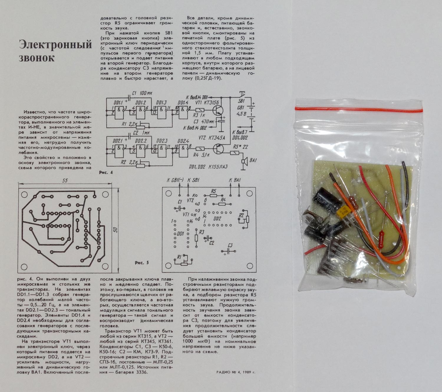 описание, электрическую и монтажную схемы, все радиодетали и печатную плату