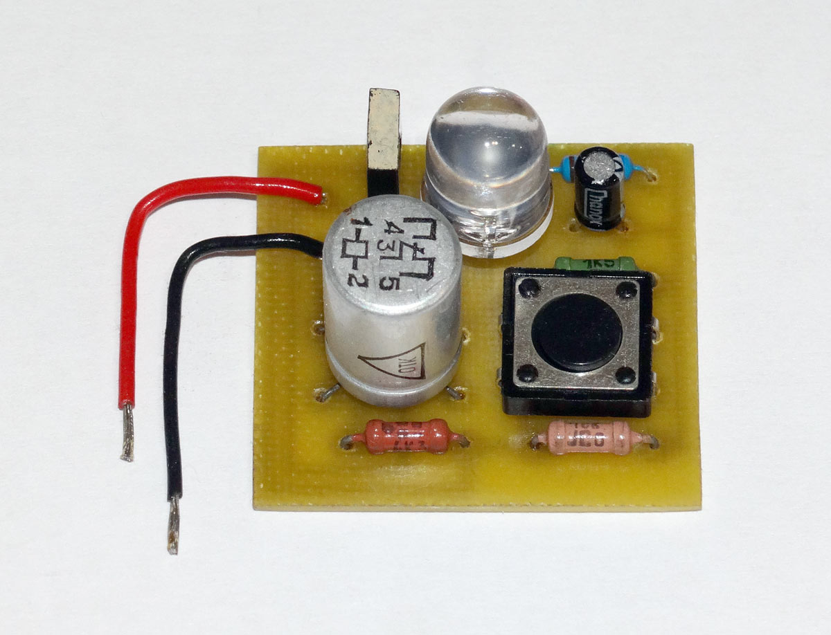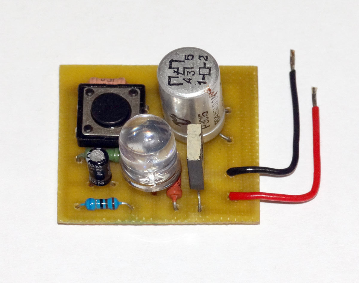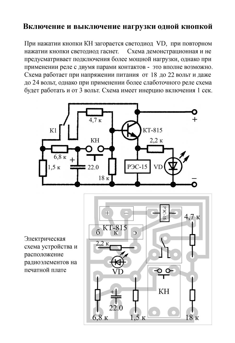 При нажатии кнопки загорается светодиод VD, при повторном нажатии кнопки