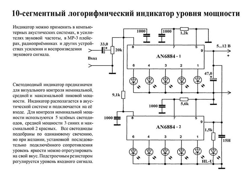 Индикатор может найти применение акустических системах, усилителях ЗЧ,