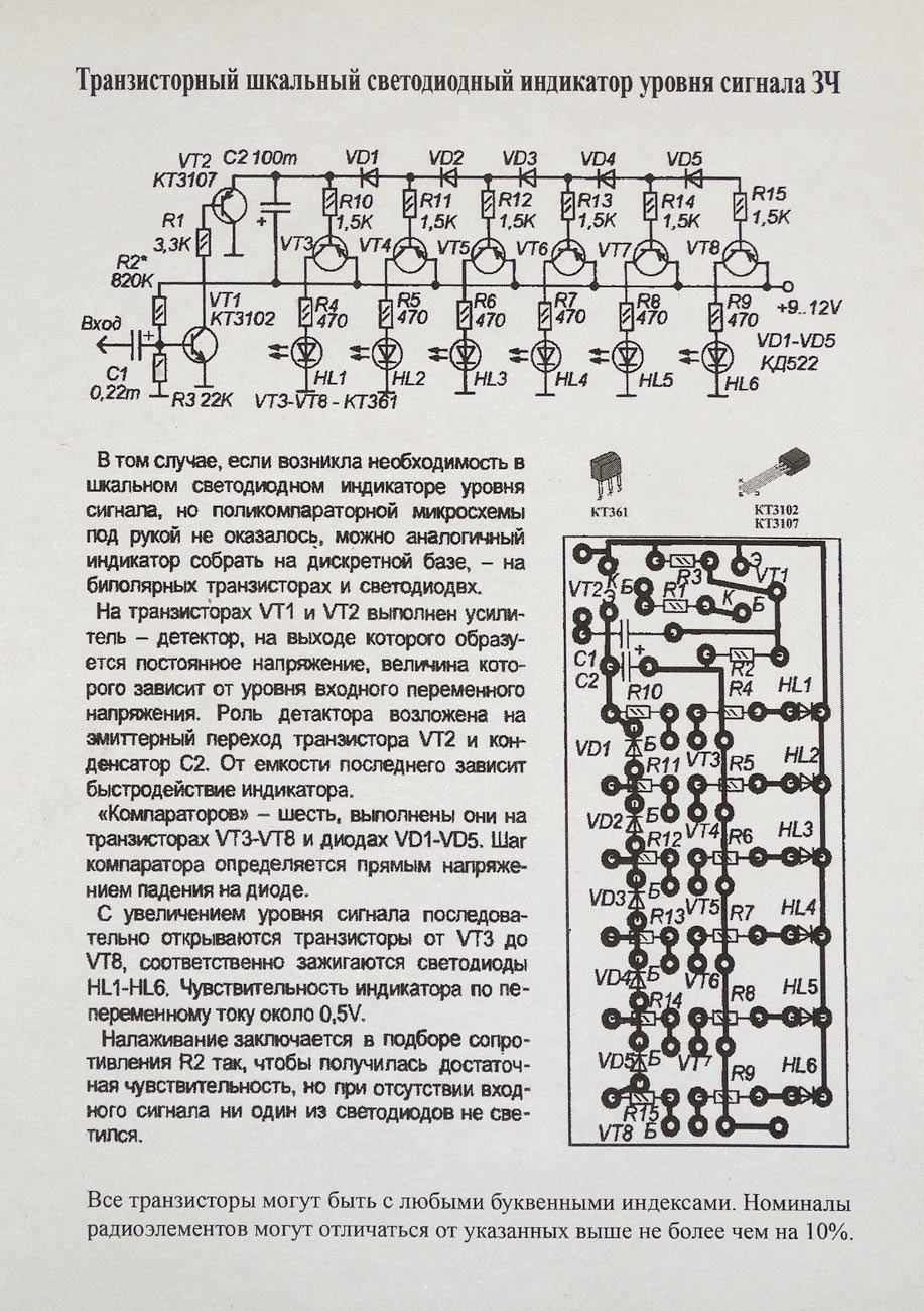 сегментного компараторного индикатора уровня сигнала ЗЧ на светодиодах.