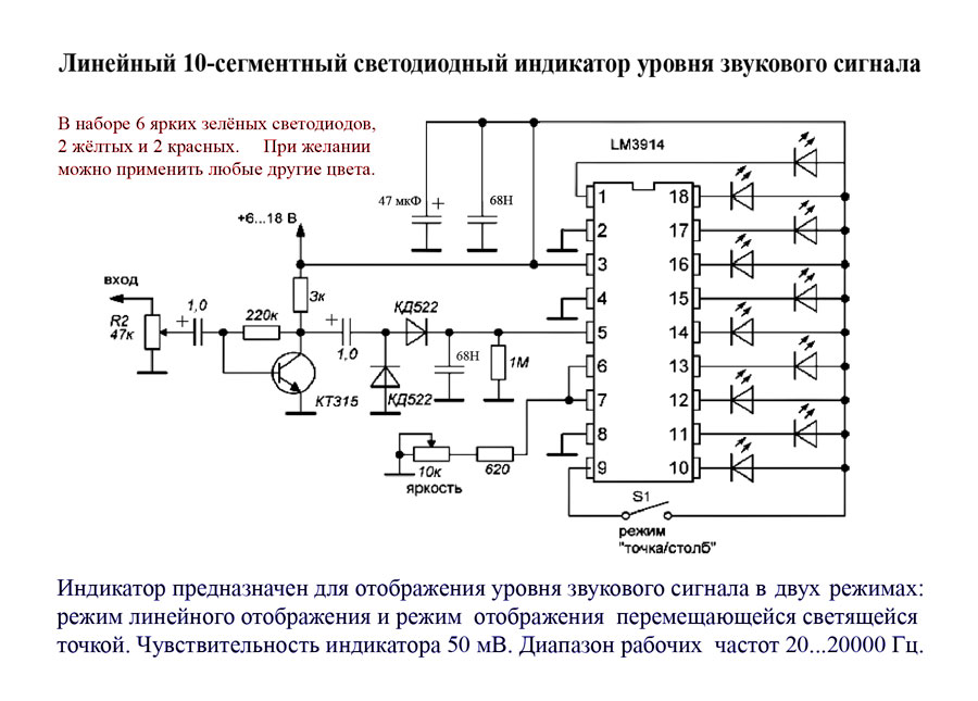 10-сегментный индикатор уровня сигнала на LM3914N".