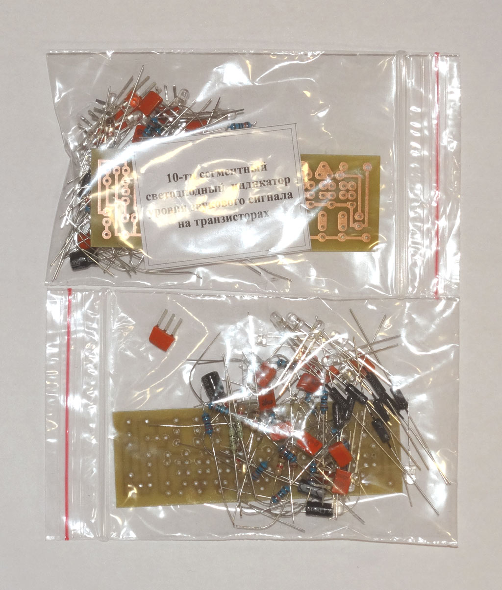 и плату для сборки индикатора уровня звукового сигнала. Диапазон частот