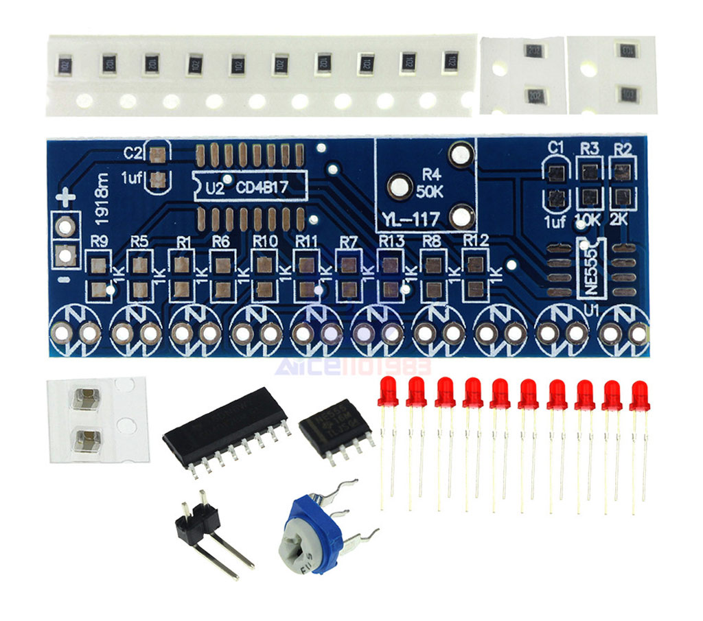 детали и плату для сборки эффекта бегущего огня, когда по очереди загорается