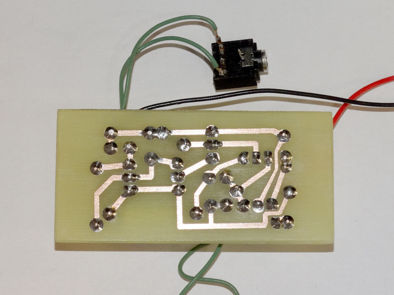 стереофонические телефоны (от плеера), включённые последовательно. Для
