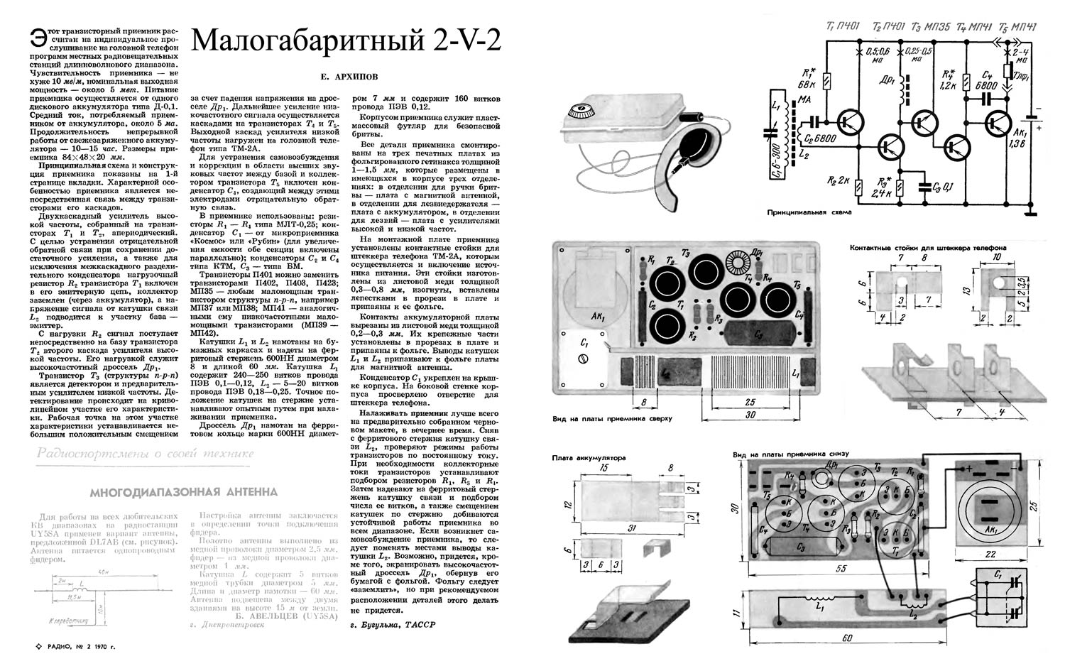 (Радио № 2 за 1970 год) с электрической и монтажной схемами, все радиодетали