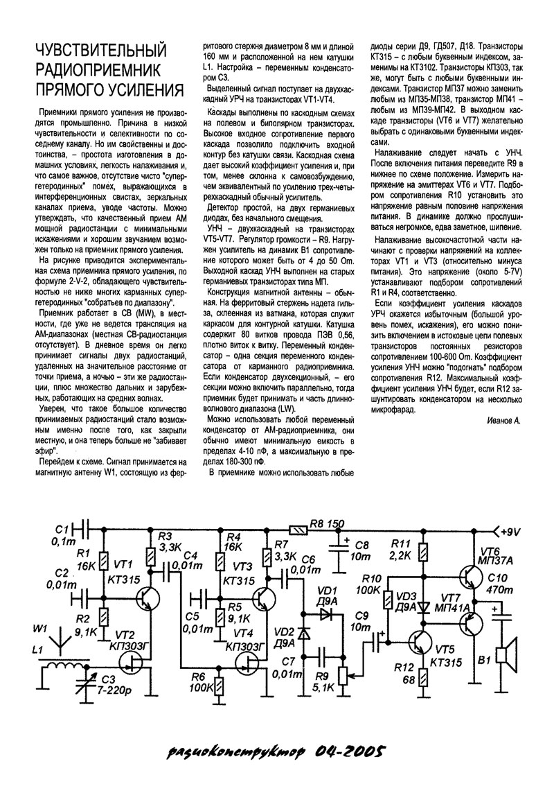 прямого усиления, работающий в диапазоне СВ. Чувствительность - 2...3 мВ/м.