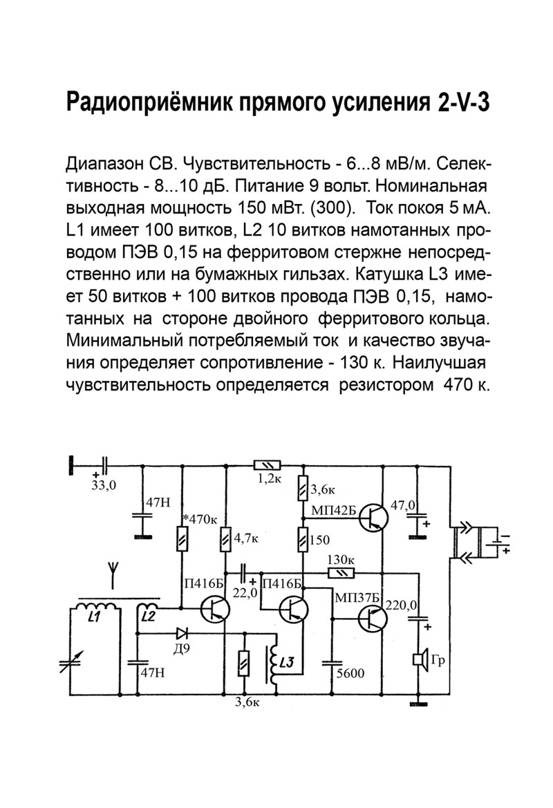 собрать радиоприёмник прямого усиления по схеме 2-V-3, работающий в диапазоне