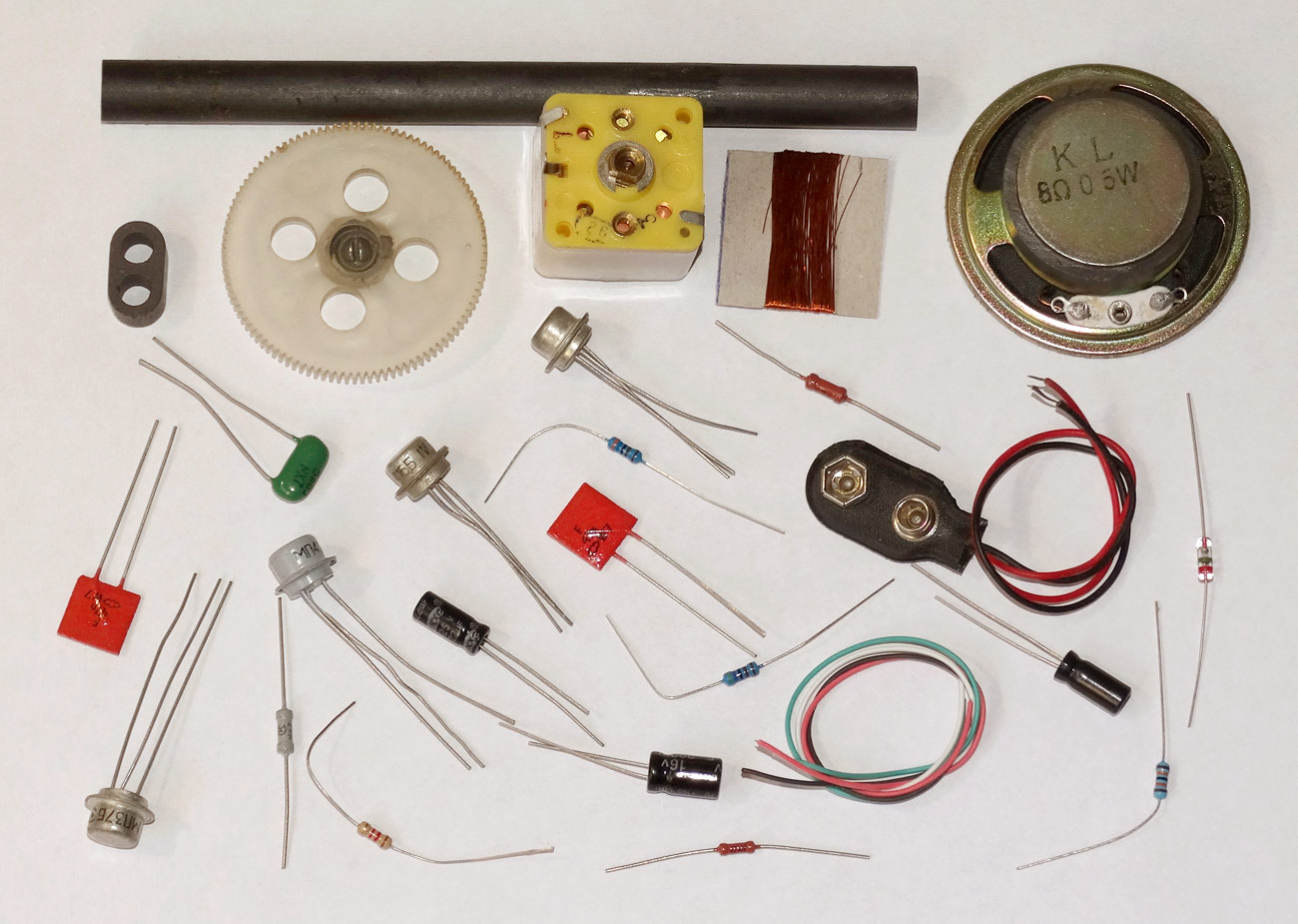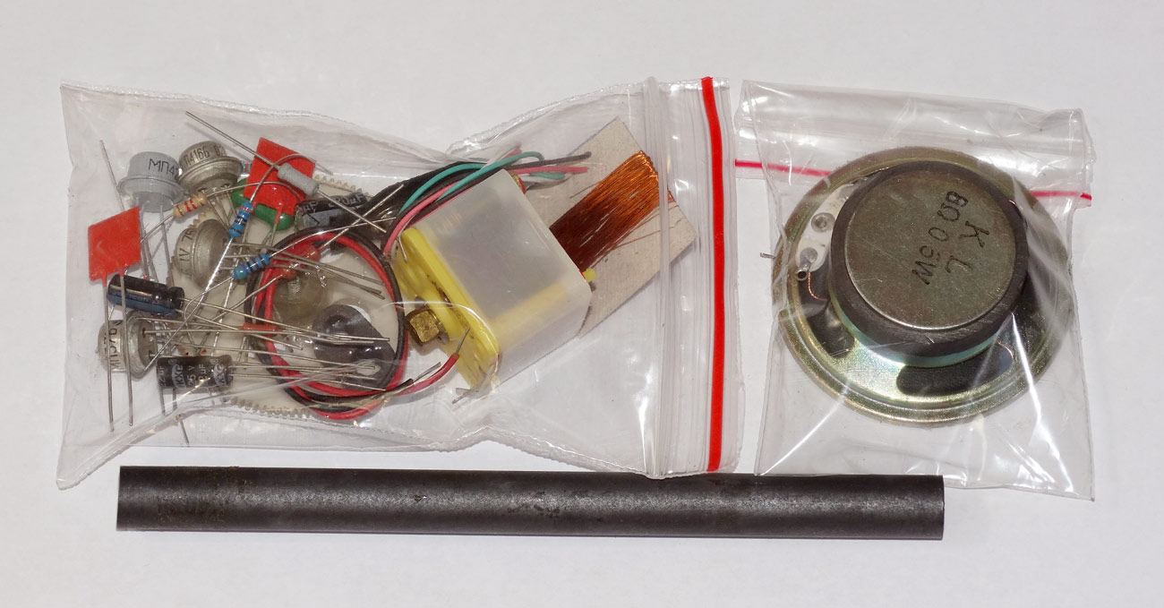 с электрической схемой и все детали, включая ферритовый стержень, КПЕ и