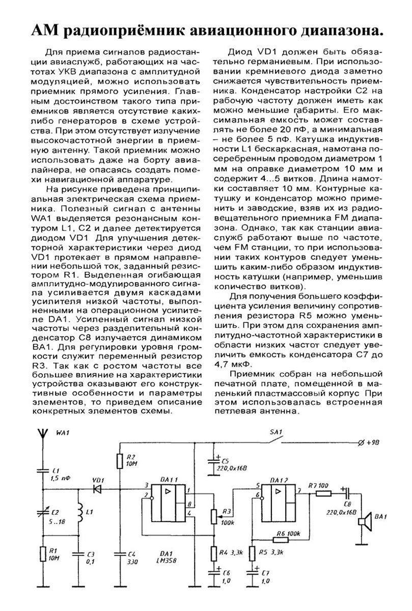 работающий в авиационном диапазоне 110...140 МГц. Чувтвительность приёмника