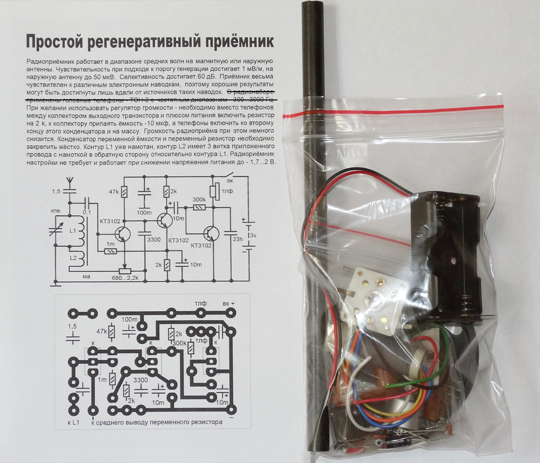 или отдельно регулятор и выключатель. Собранный радиоприёмник имеет плавный