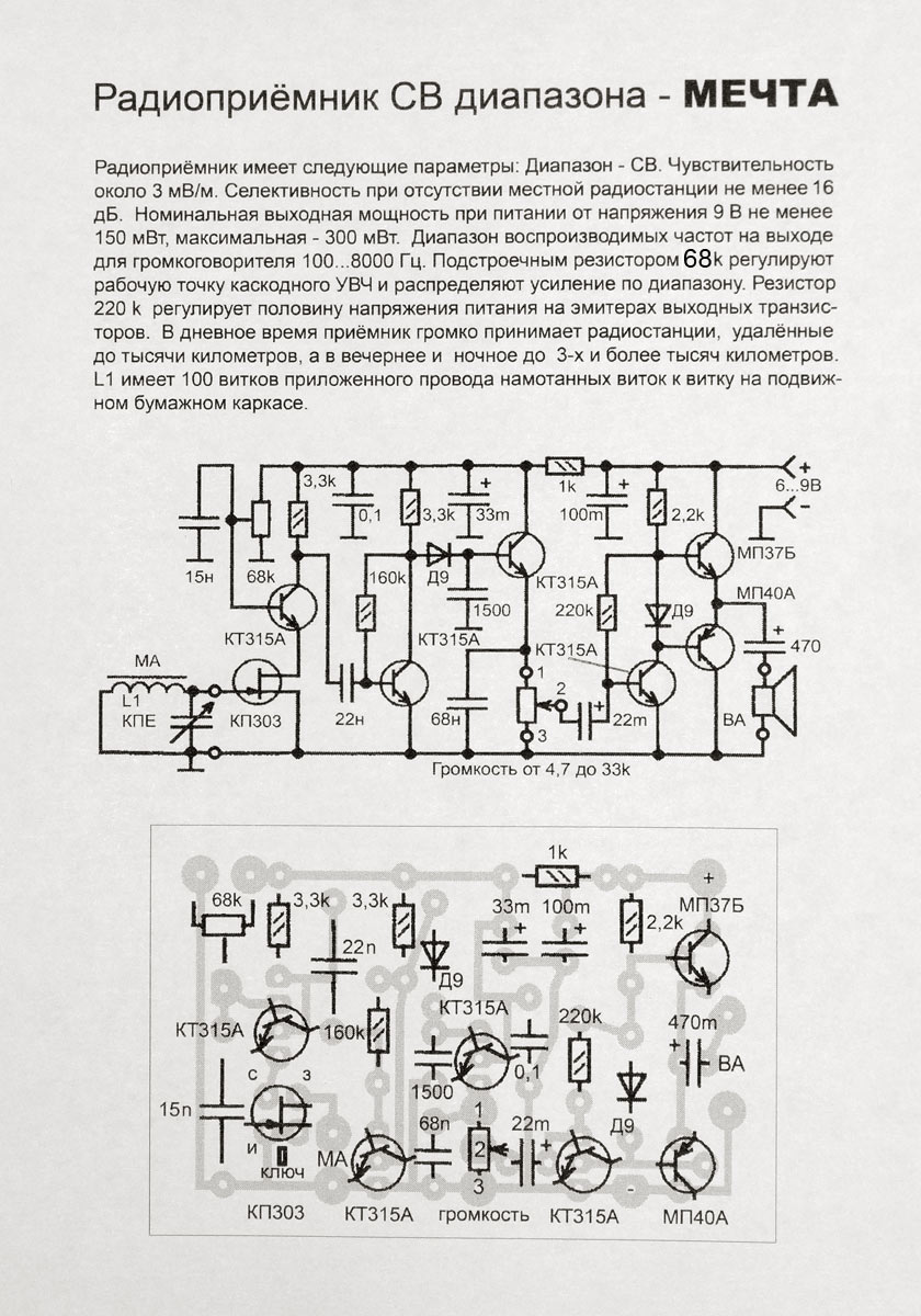 В комплекте описание приёмника со схемами,