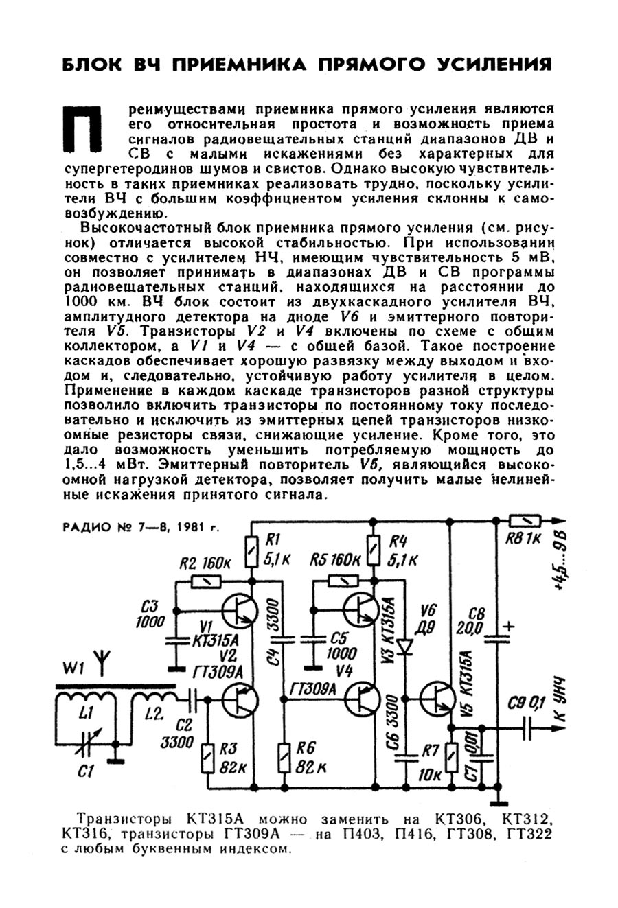 схема и радиодетали (журнал "Радио" № 7-8 за 1981 год) для сборки высокочастотной