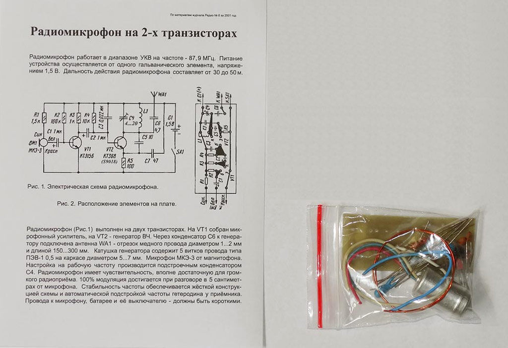 "Радиомикрофон FM диапазона на 2-х транзисторах".