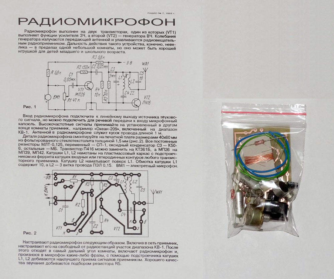 для сборки радиомикрофона работающего в диапазоне КВ (25 метров). Дальность