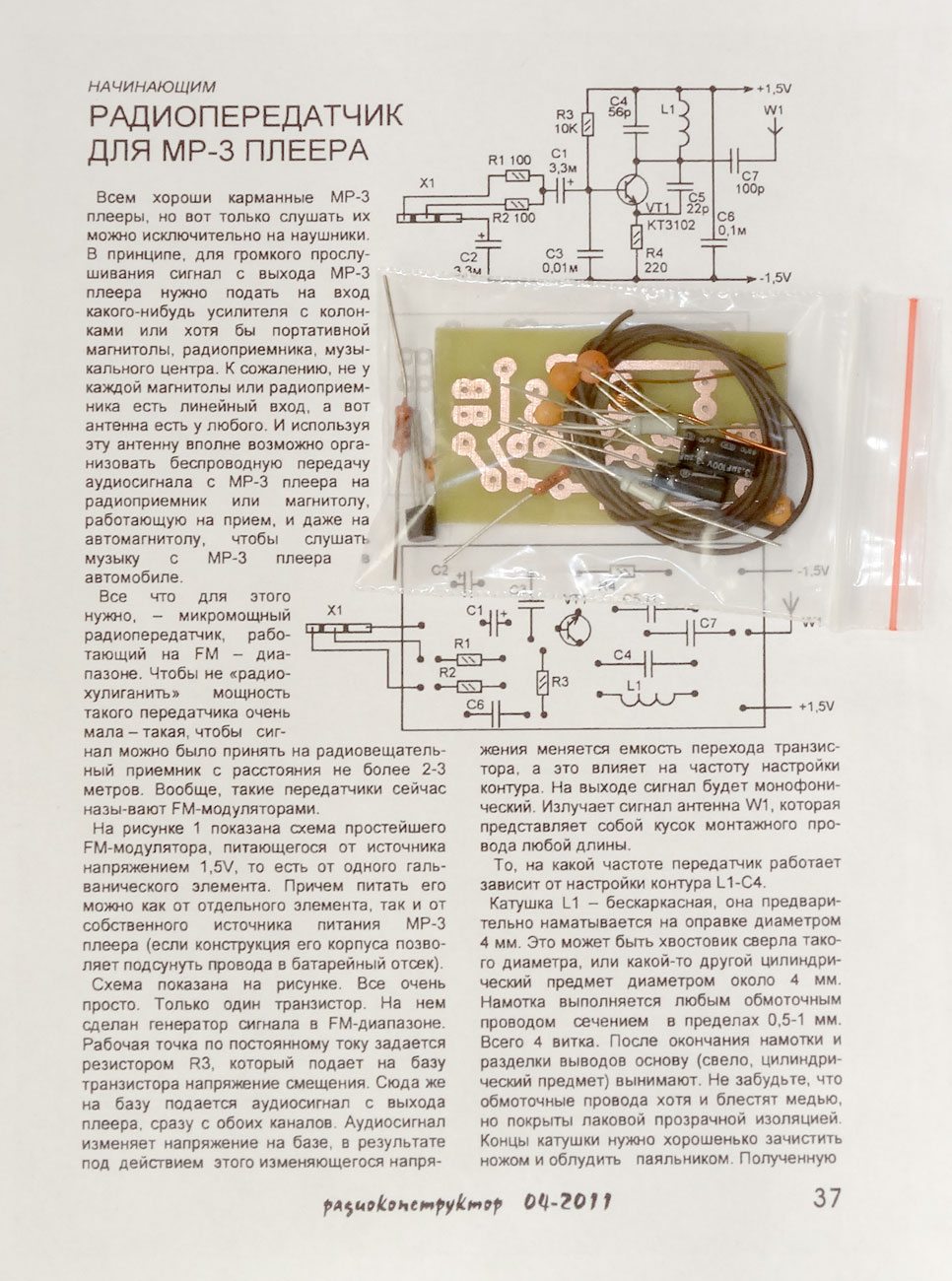 радиопередатчика НЧ сигнала с MP3 плейера или другого источника. Передатчик