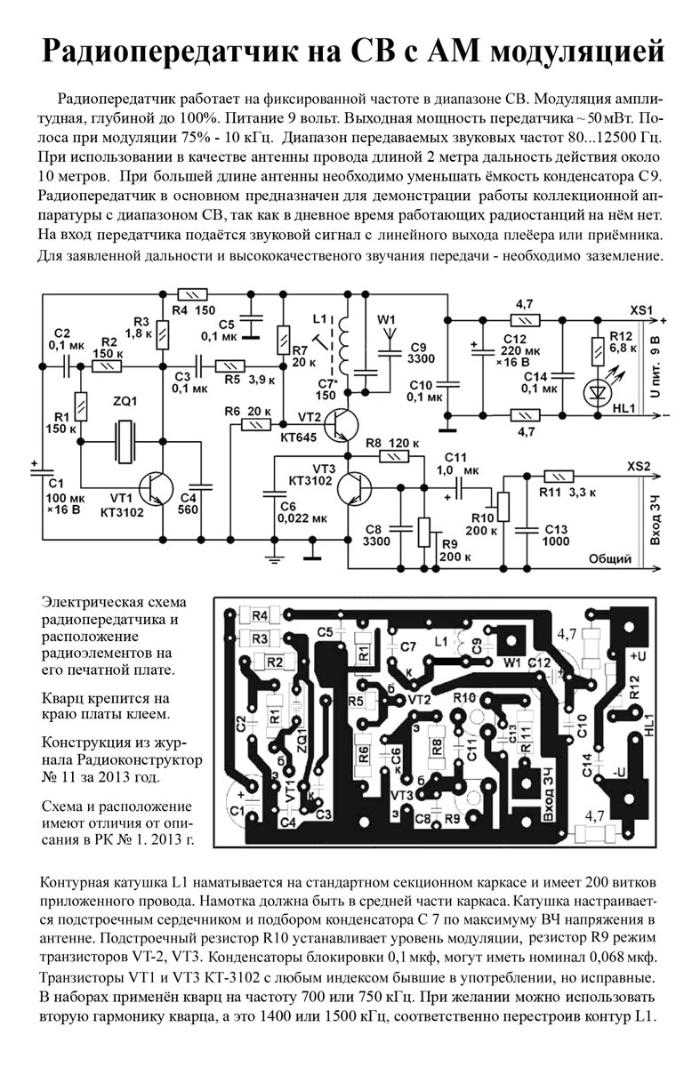 АМ радиопередатчик имеет два варианта исполнения. 1-й вариант