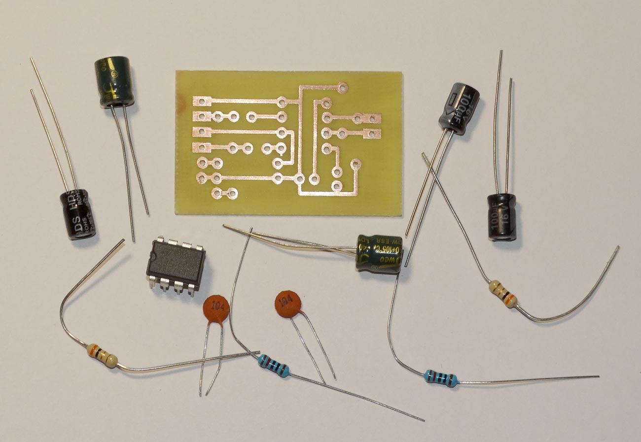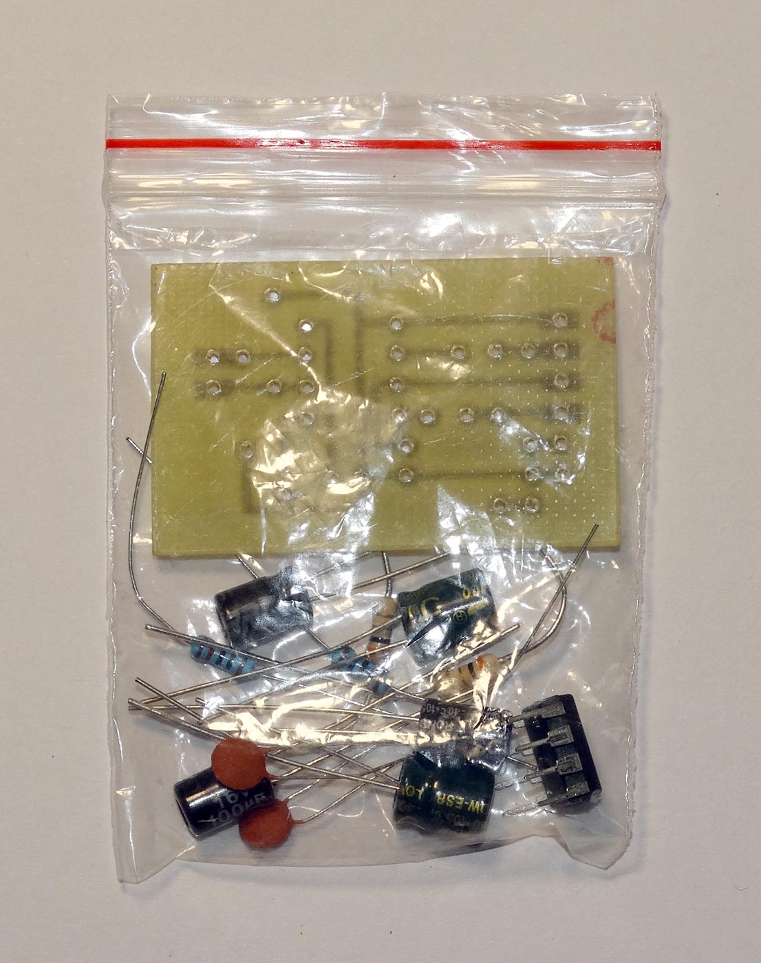 и монтажную схемы, печатную плату и радиодетали для сборки стереофонического