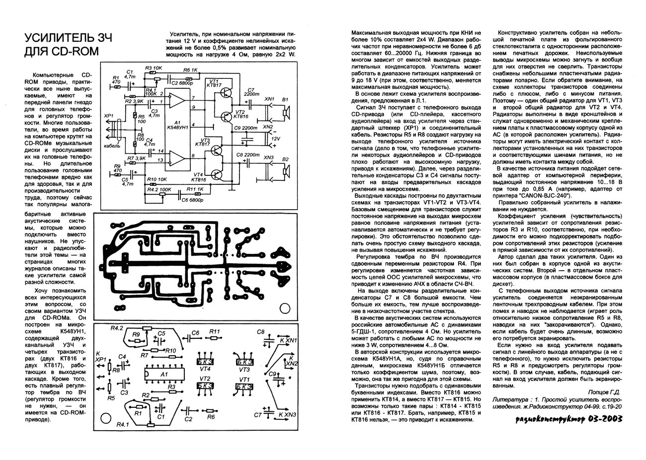 Номинальная выходная мощность 2х2 Вт на нагрузке 4 Ом при КНИ не более