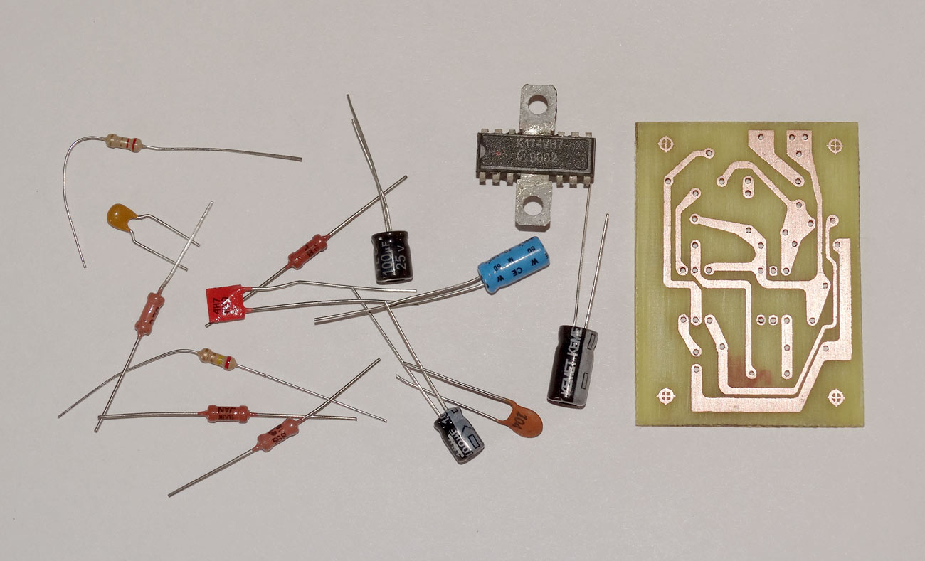 ёмкостью 1...10 мкф. Микросхемы типа К174УН7 в наборах б/у, но все проверенные