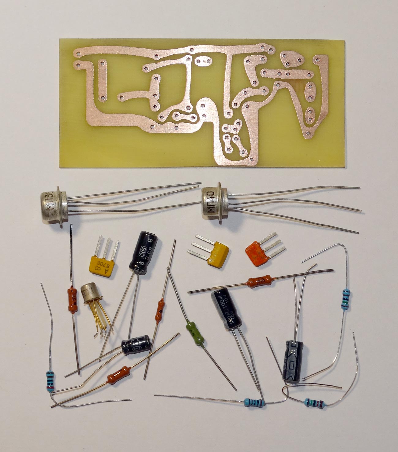 плату для сборки усилителя ЗЧ. Номинальная выходная мощность - 100 мВт