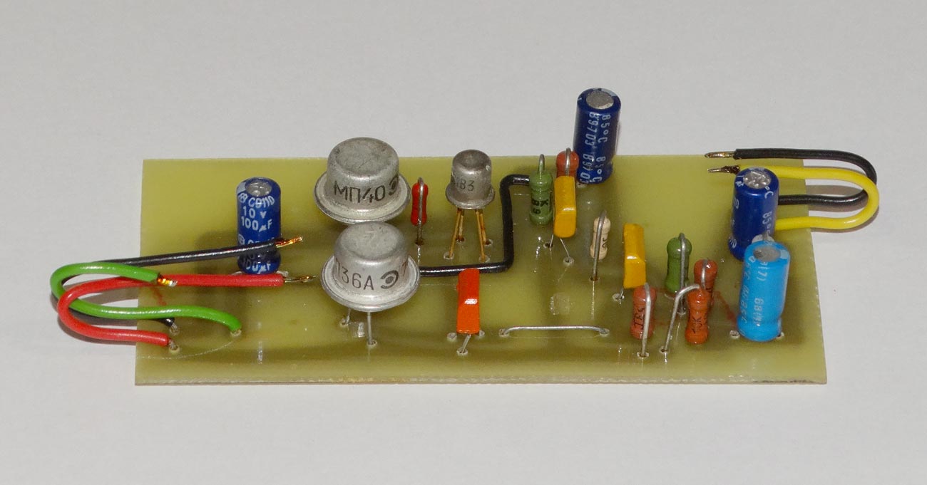 НЧ частот зависит от ёмкостей С1 и С4). Транзистор VT6 не новый, но исправный.