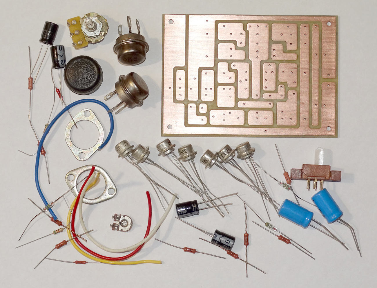 и монтажную схемы, детали и печатную плату для сборки усилителя низкой