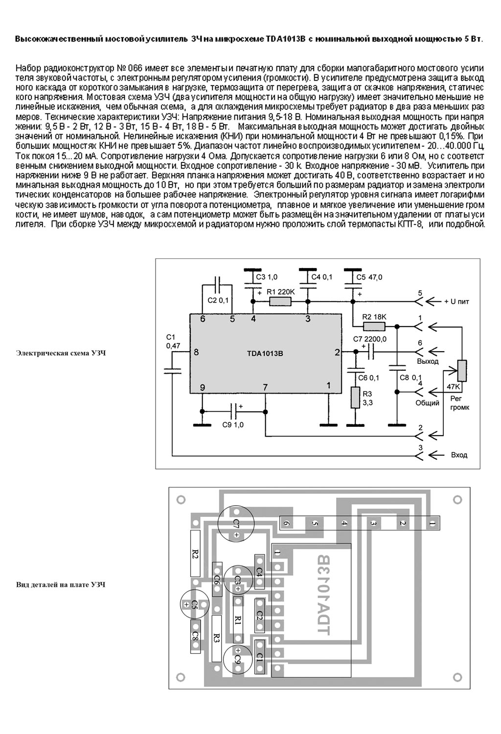 мостовой усилитель ЗЧ на микросхеме TDA1013B".