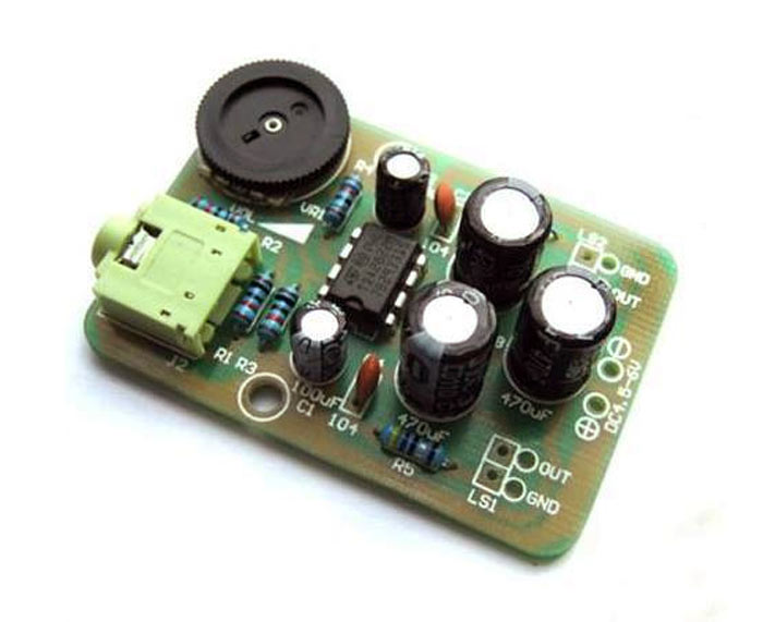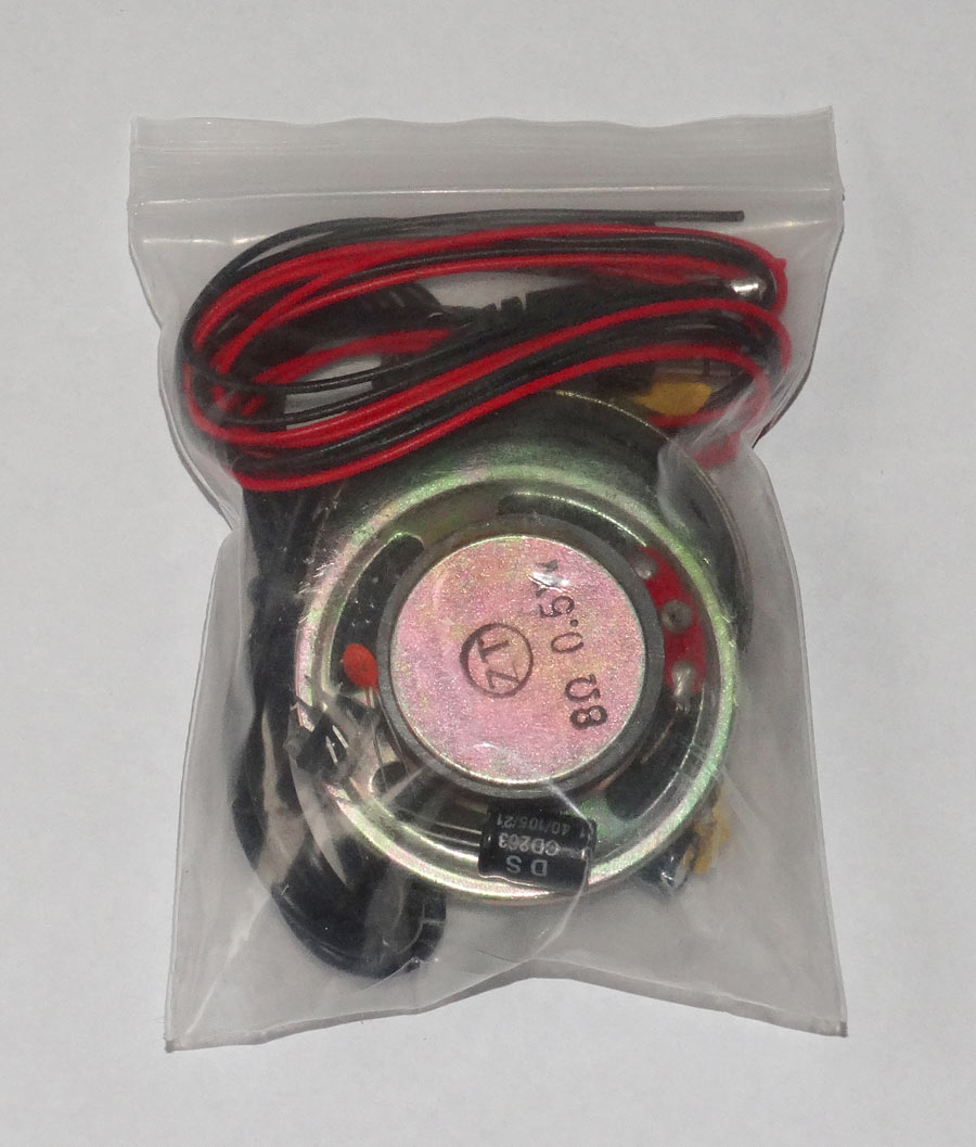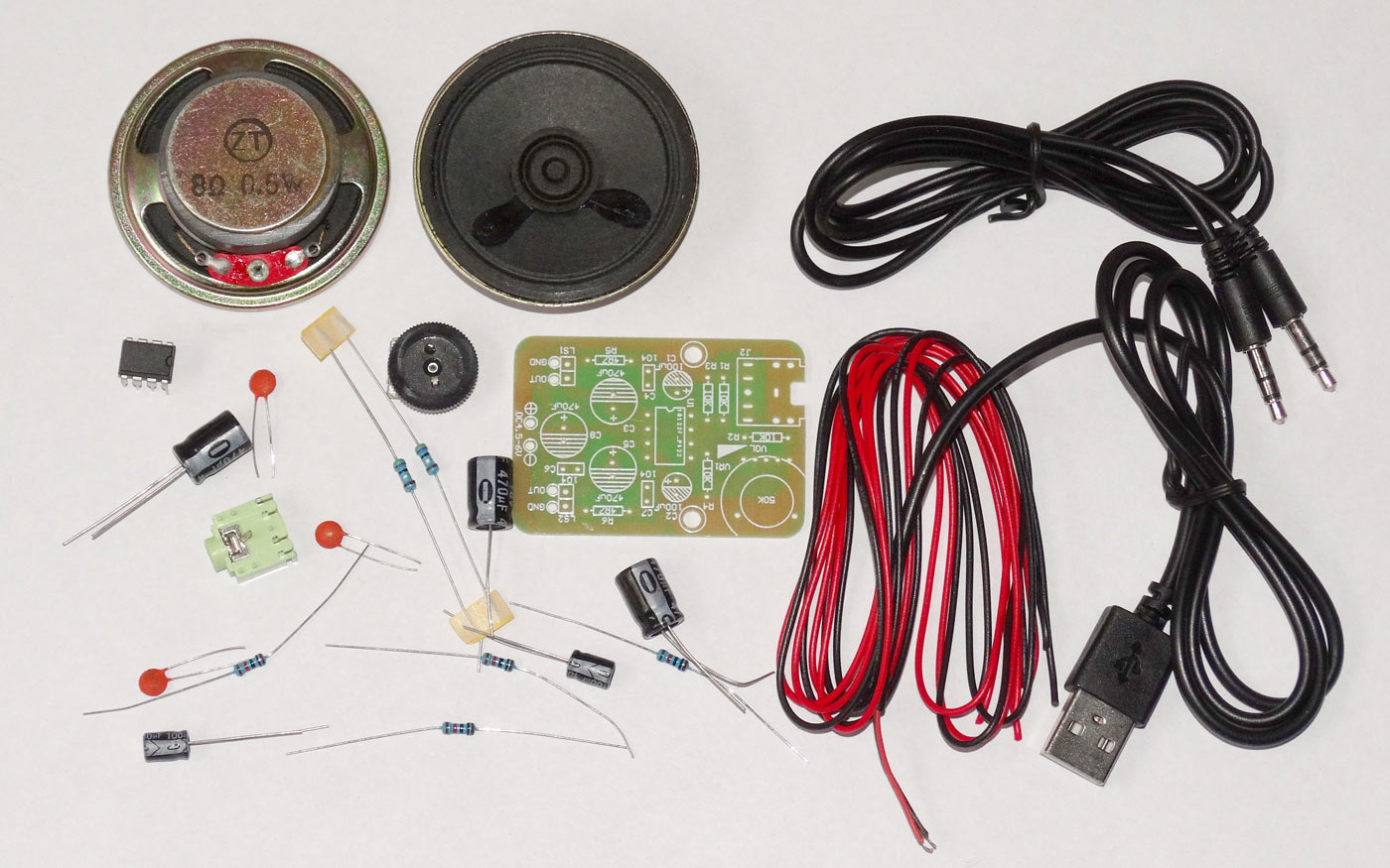 радиодетали, узлы, элементы, провода, два громкоговорителя и печатную плату
