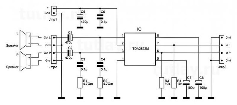 для сборки стереофонического усилителя ЗЧ предназначенного для работы с